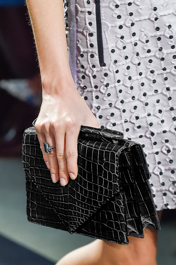На фото с этой сумкой - фотографии с подиумного показа, и популярная светская львица Снежана Георгиева.