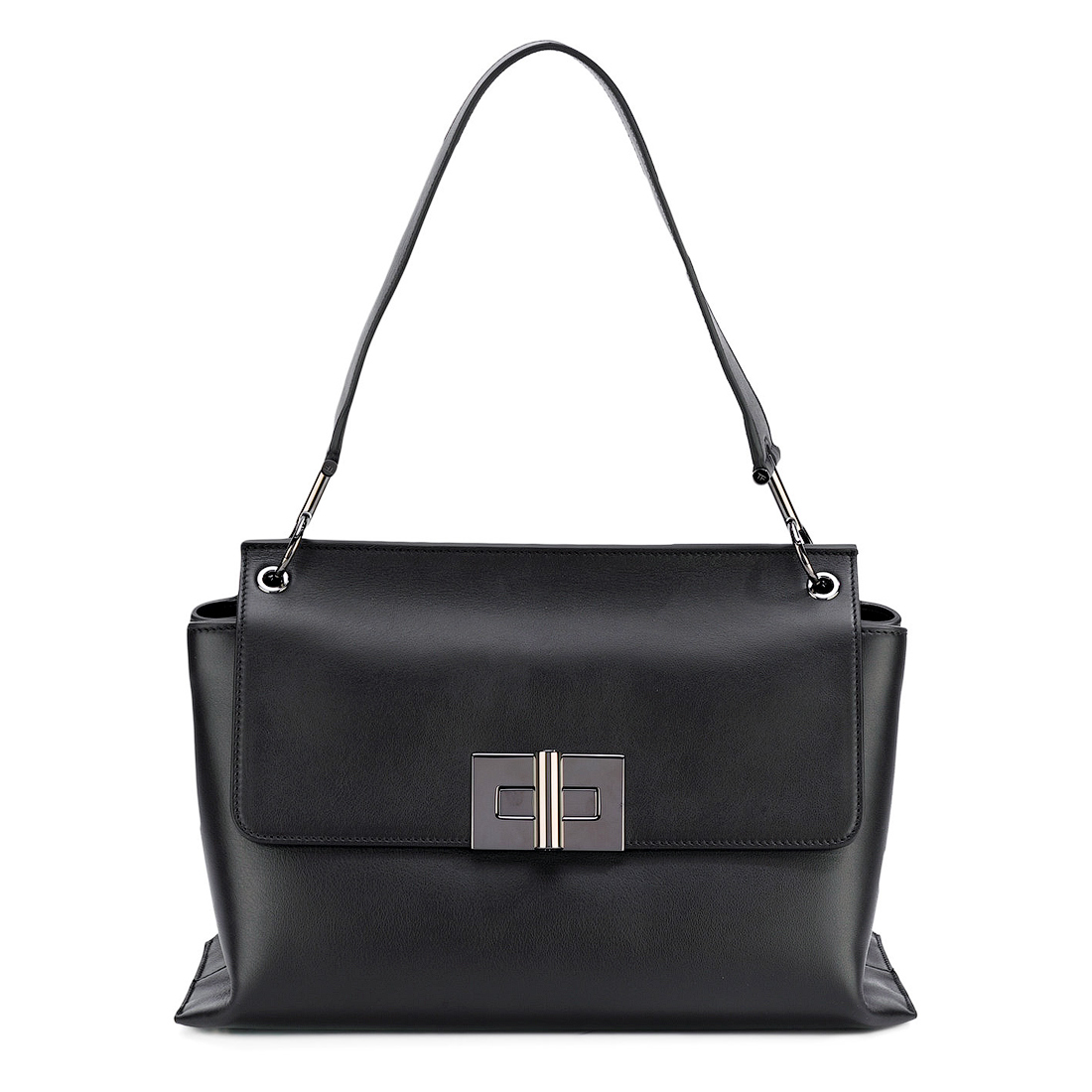 Особенность модели - сумка исполнена в стилистике "all black": черная кожа и черная глянцевая фурнитура.