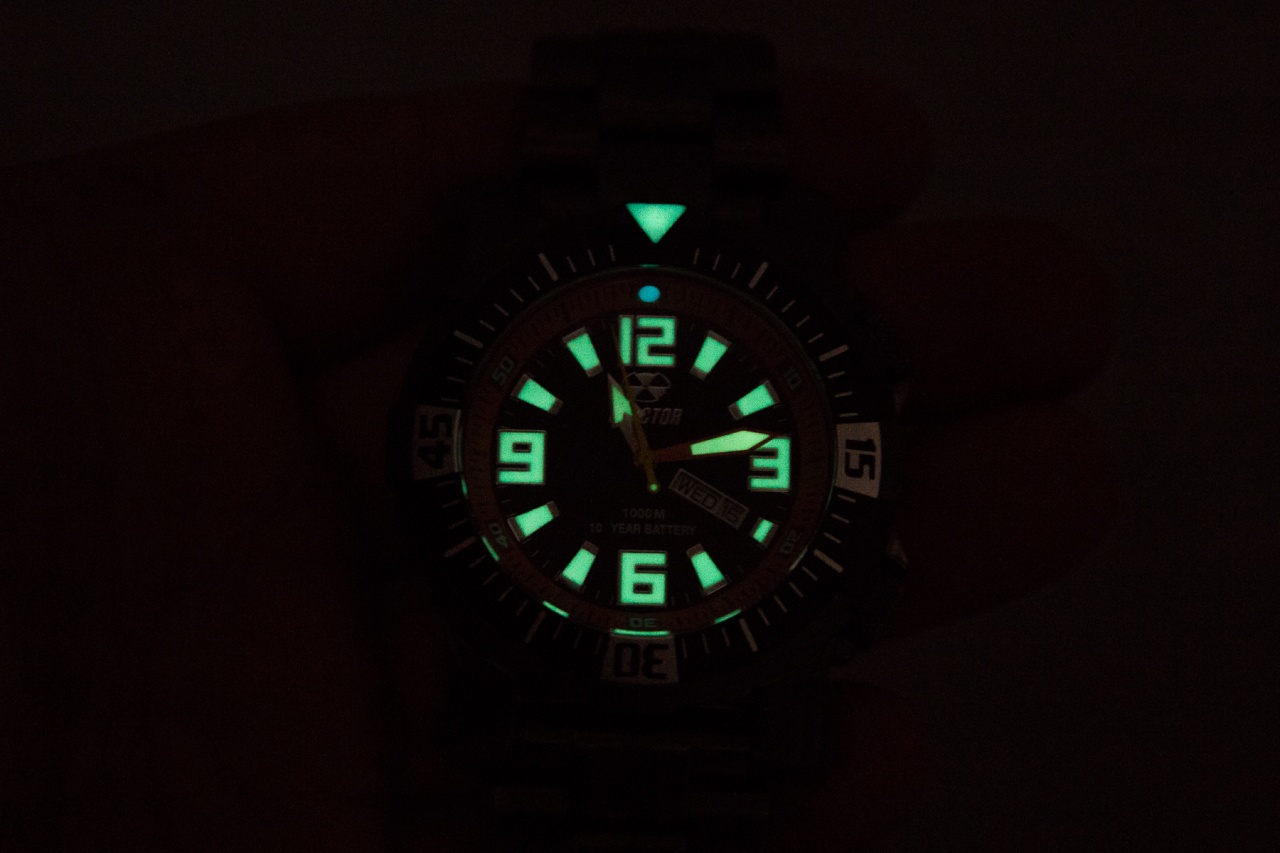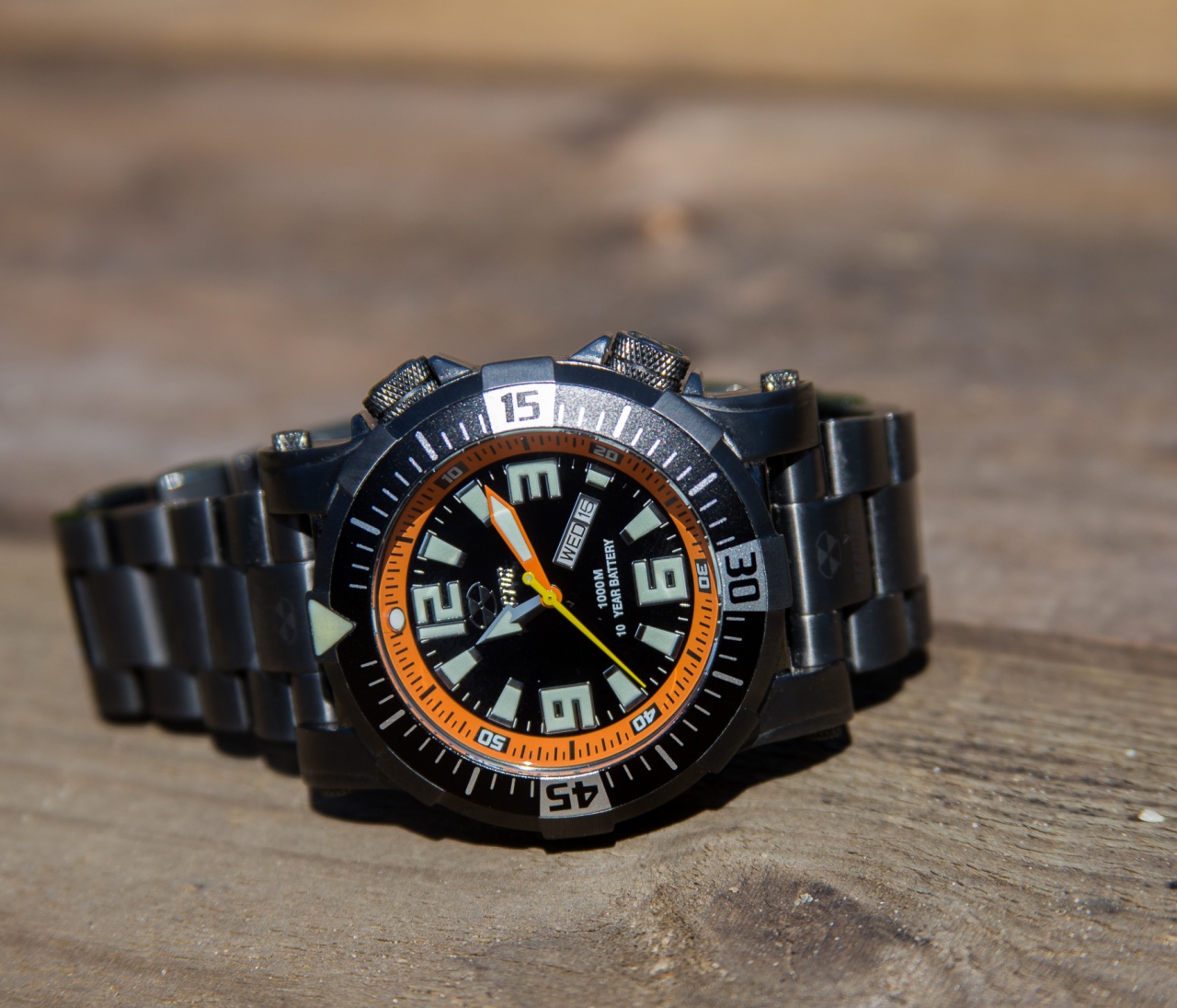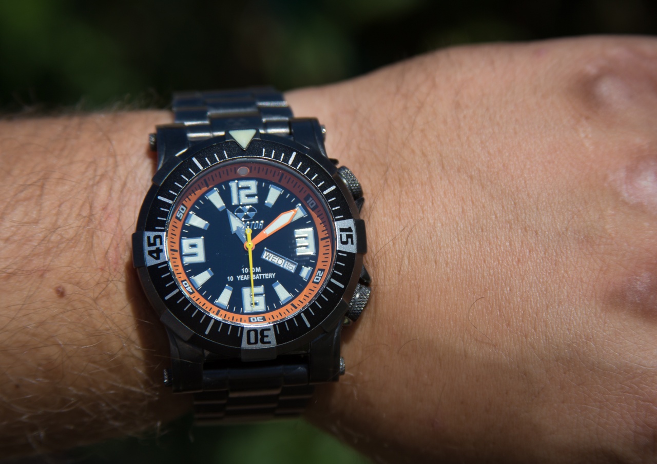 Водозащита 1000м. Стекло минеральное K1. Браслет стальной, полностью литой, с дайверским расширителем и микроподстройкой, настроен на 21см, есть доп. звено.