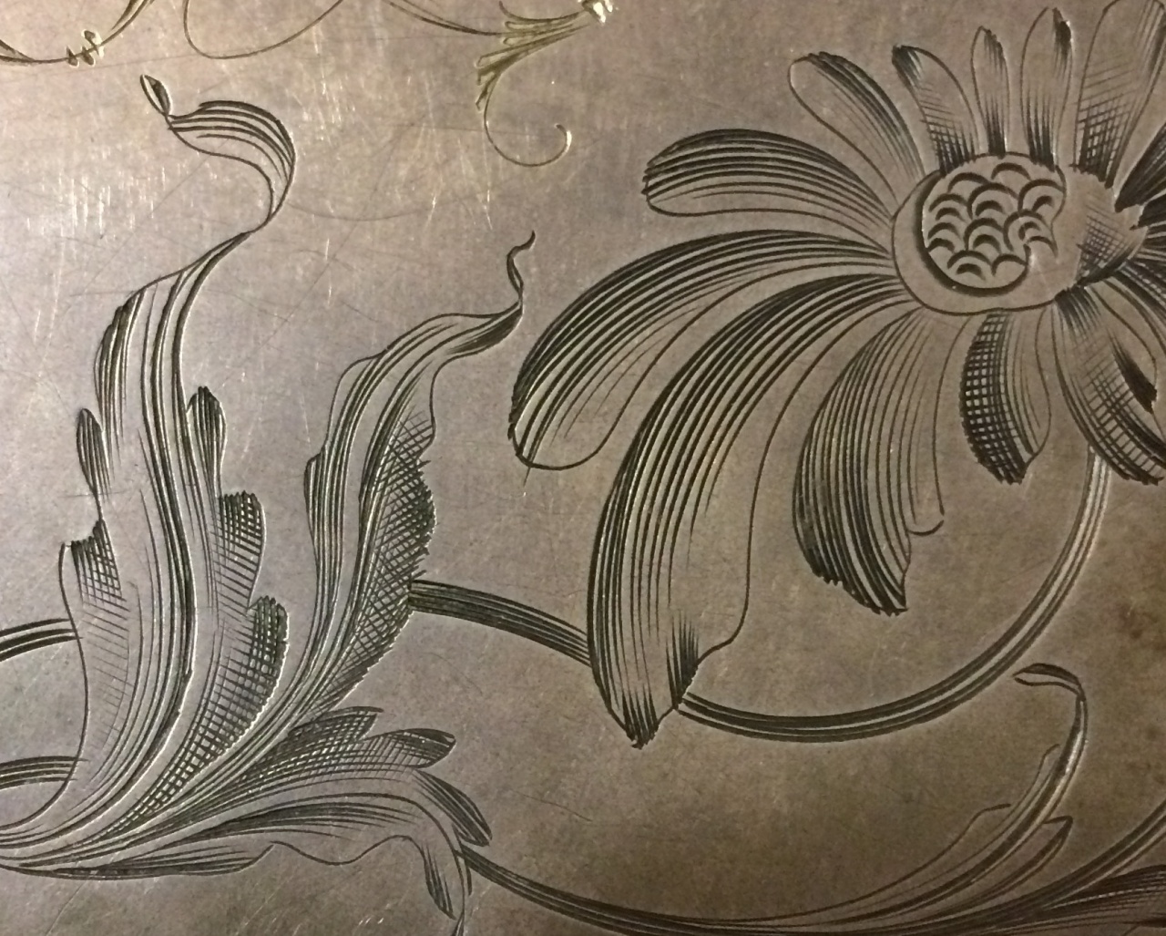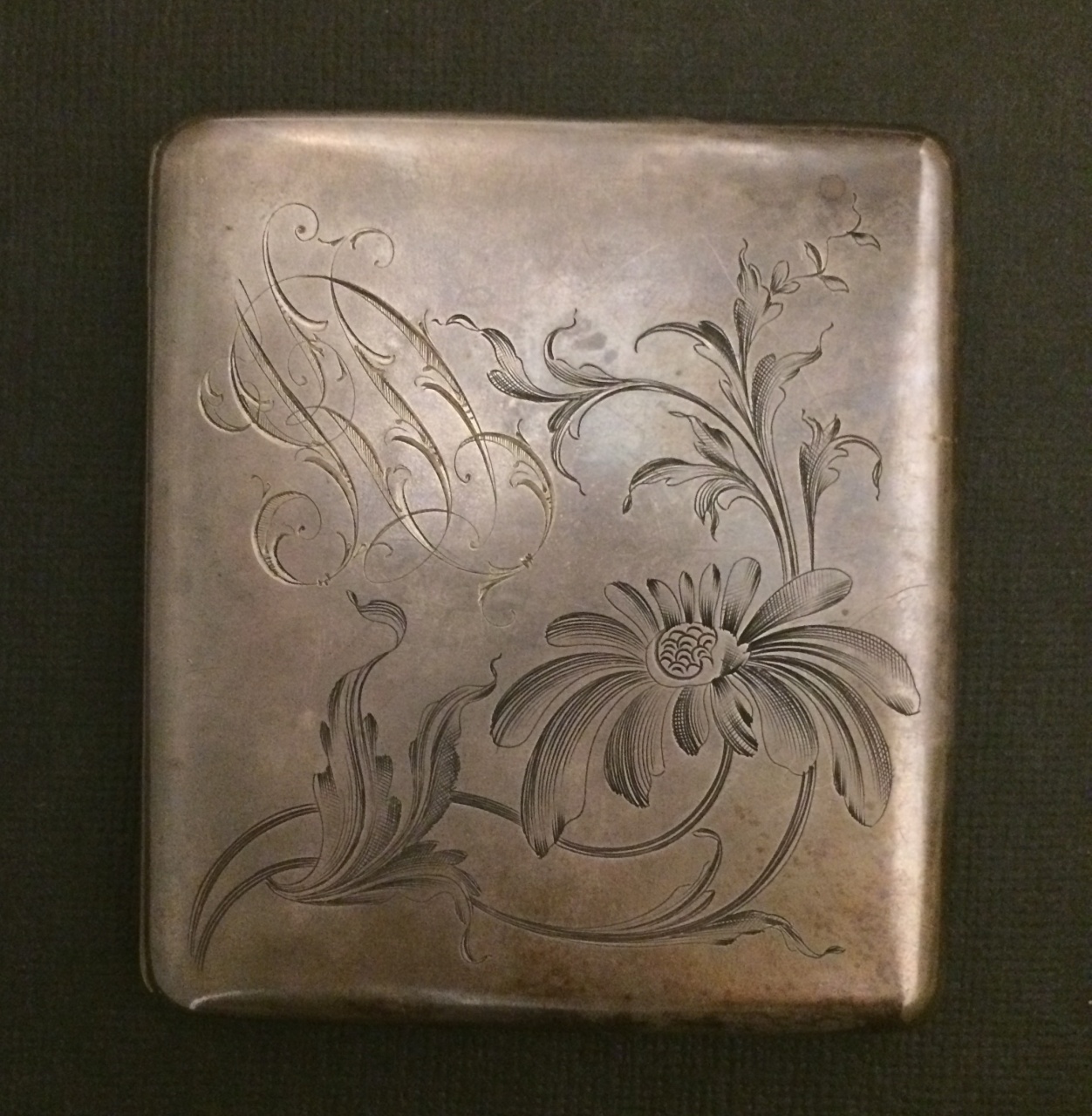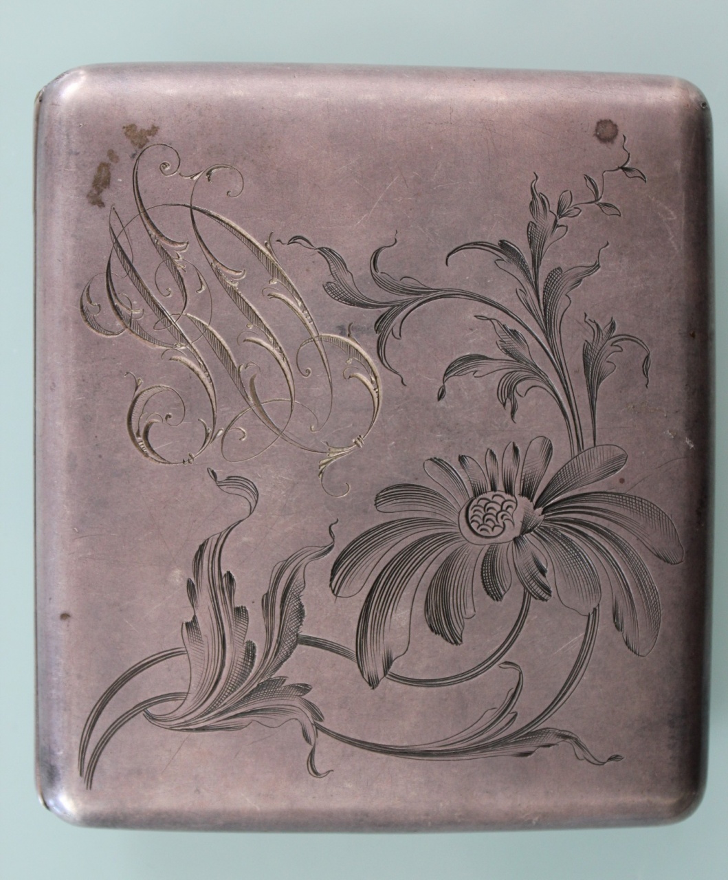Визитница с гравировкой в стиле модерн, с искусной ювелирной работой.