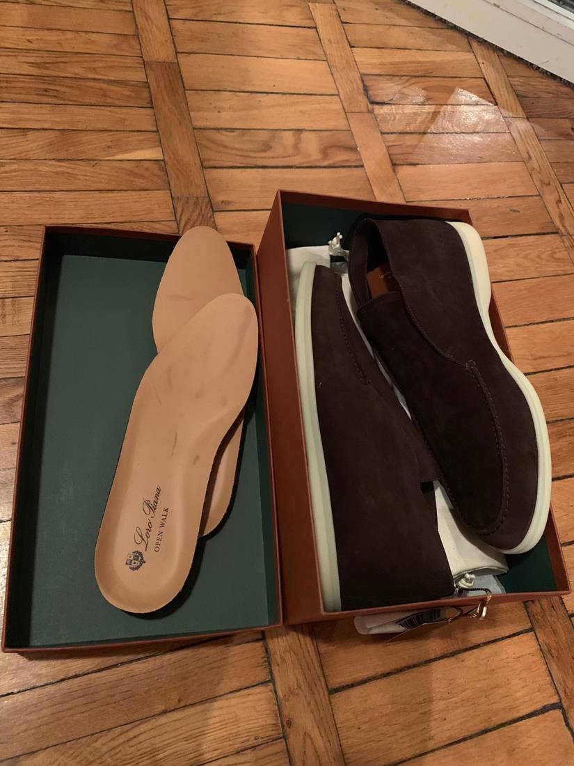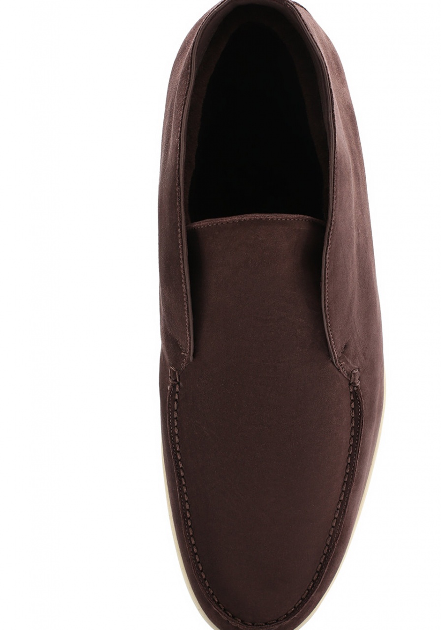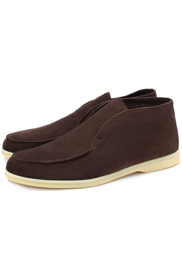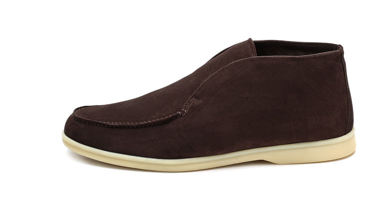 коллекцию сезона осень-зима 2017 года вошли ботинки из прочной фактурной замши цвета молочного шоколада. Мастера бренда, основанного Пьетро Лоро Пьяна, вручную прошили мыс вощеной нитью для большей прочности. Подкладка из мягкой овчины хорошо сохраняет тепло, поэтому ноги не замерзнут.