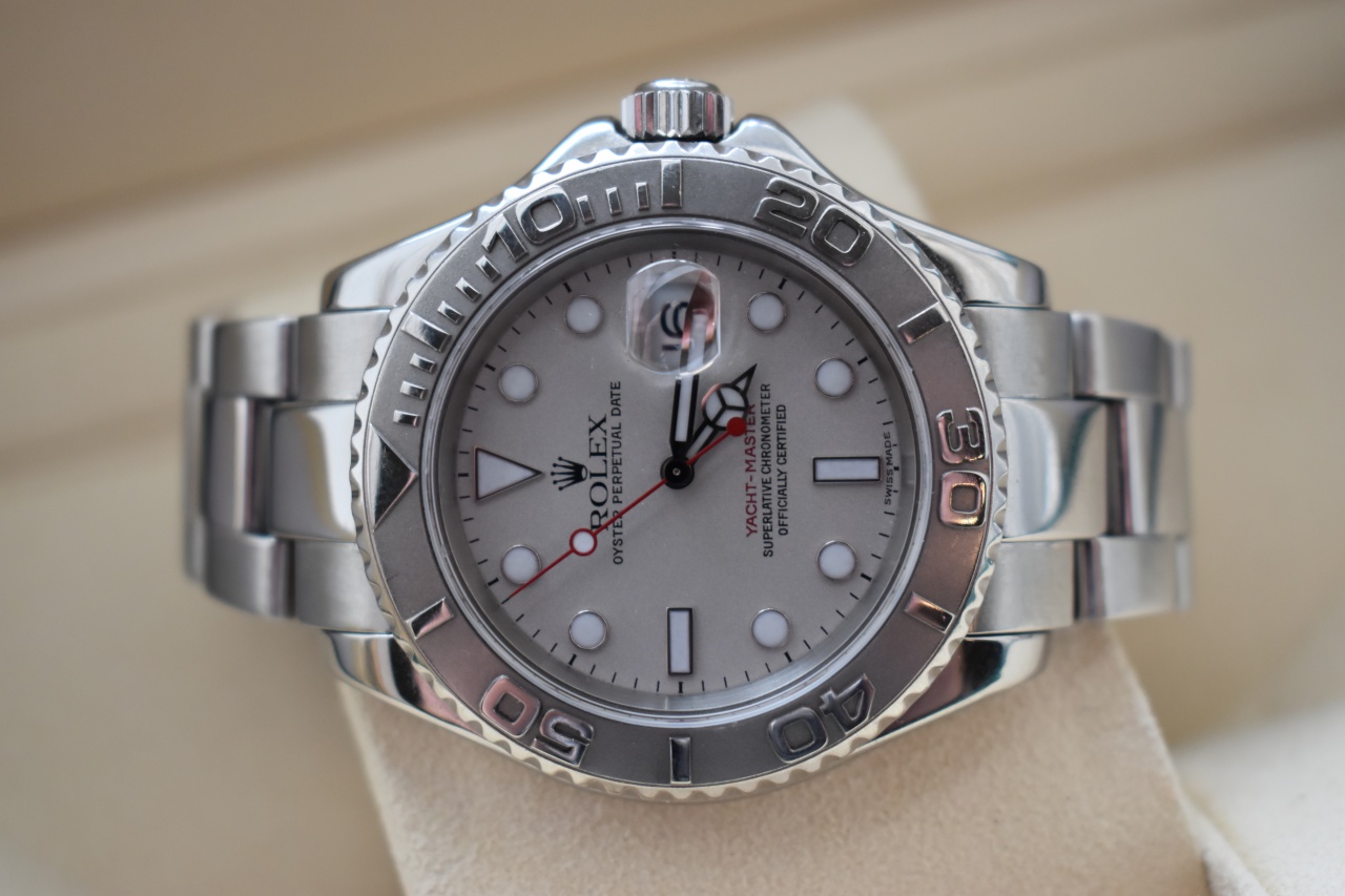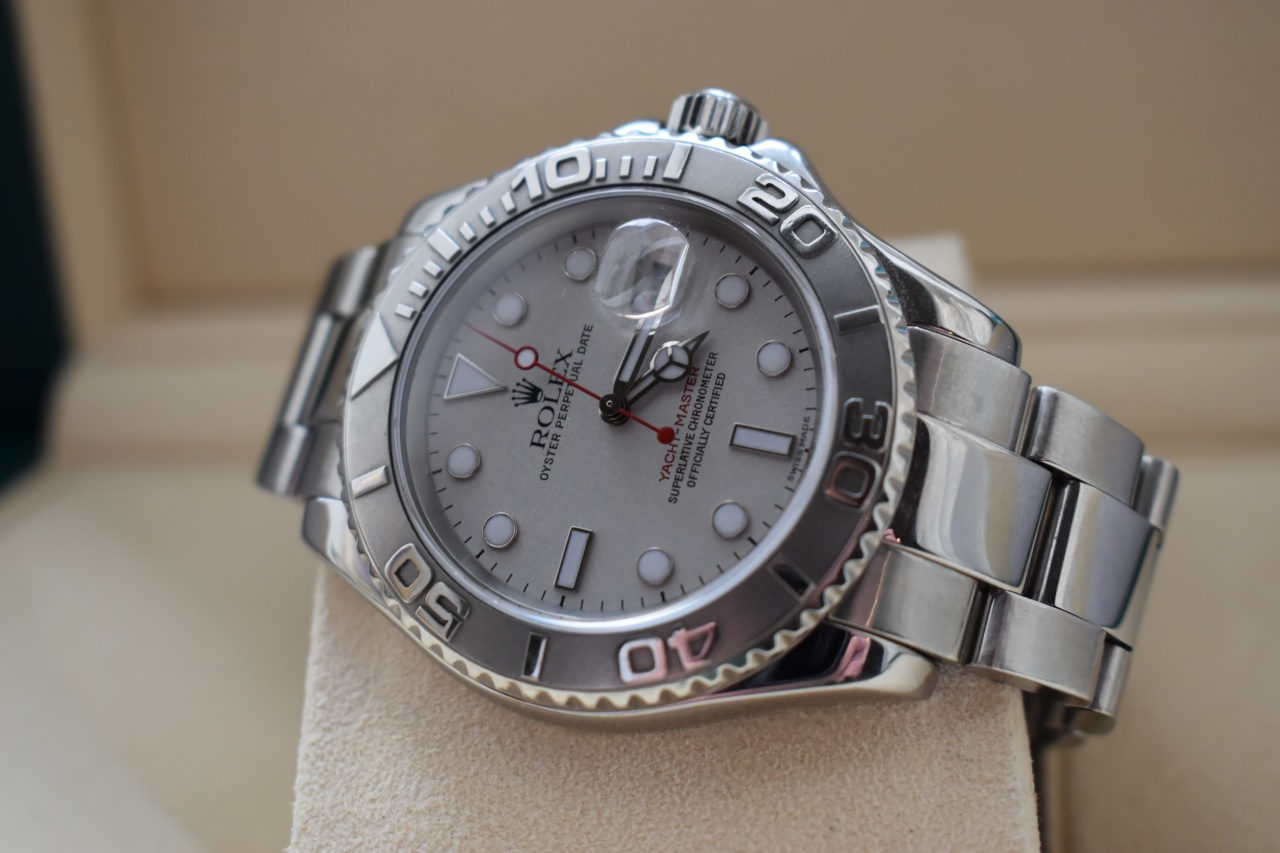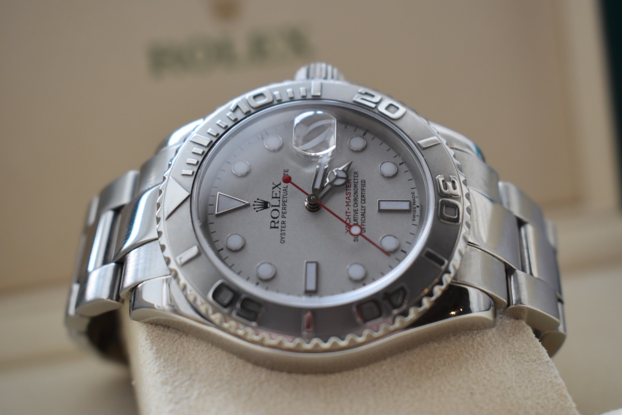В продаже прекрасный Яхт Мастер с безелем из платины.