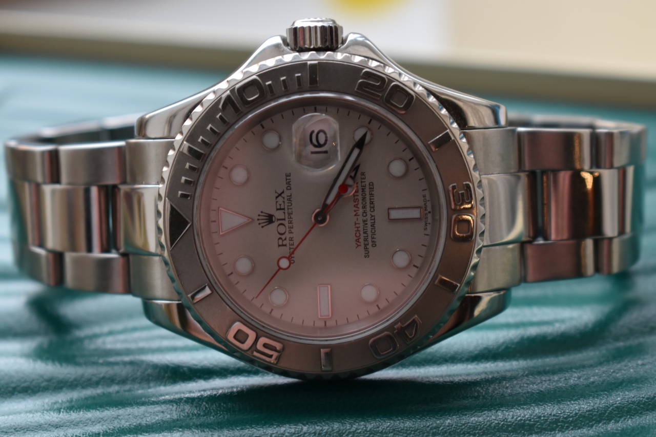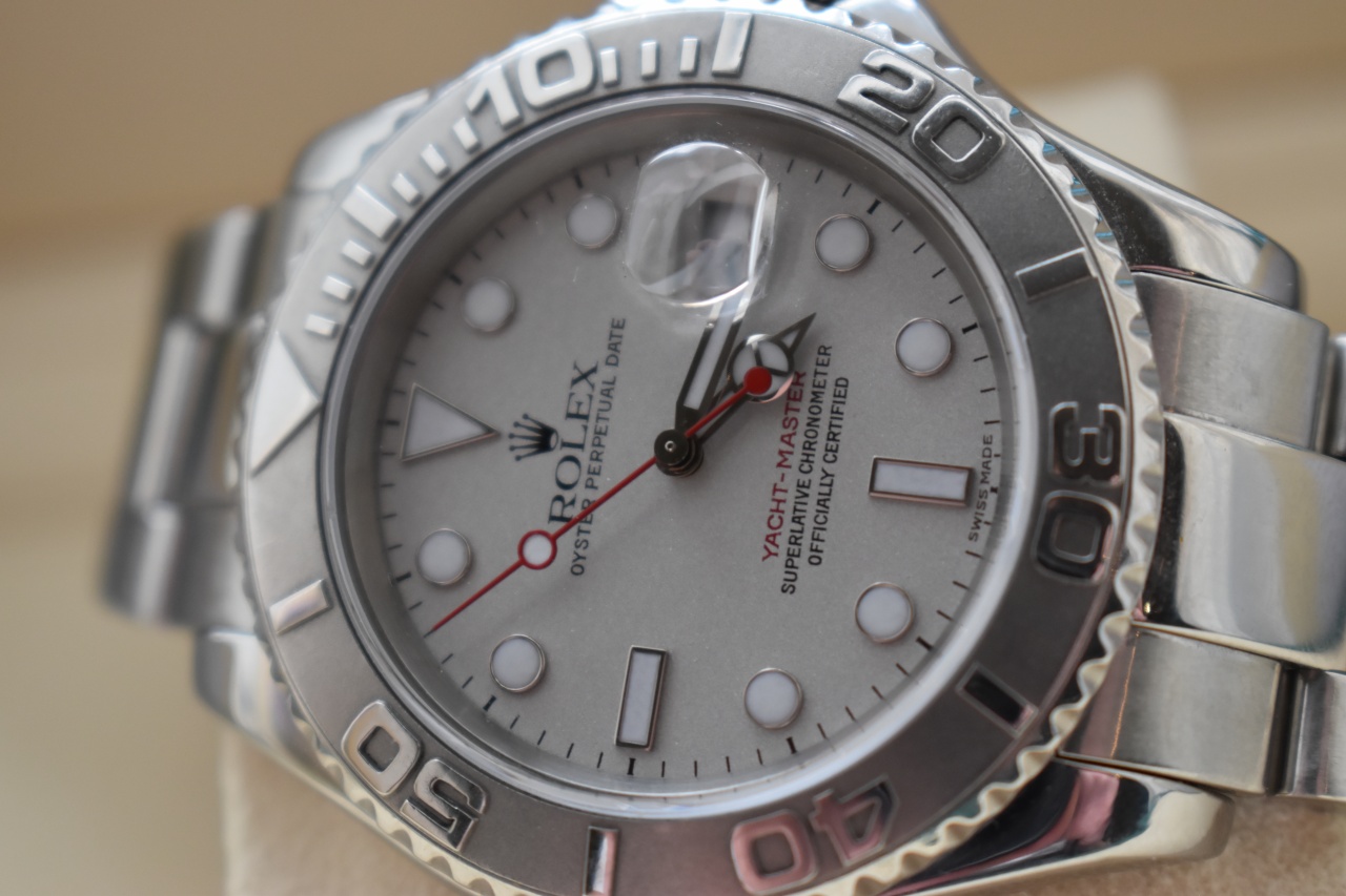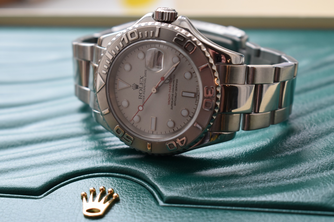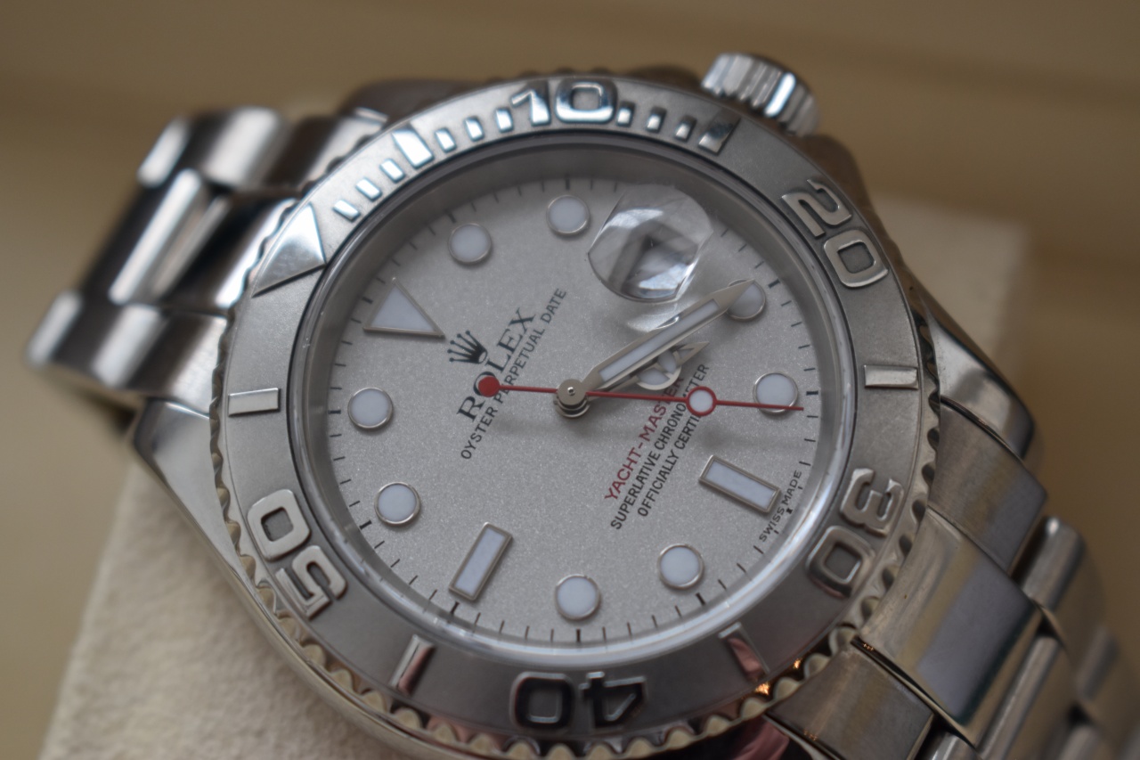 В продаже прекрасный Яхт Мастер с безелем из платины.