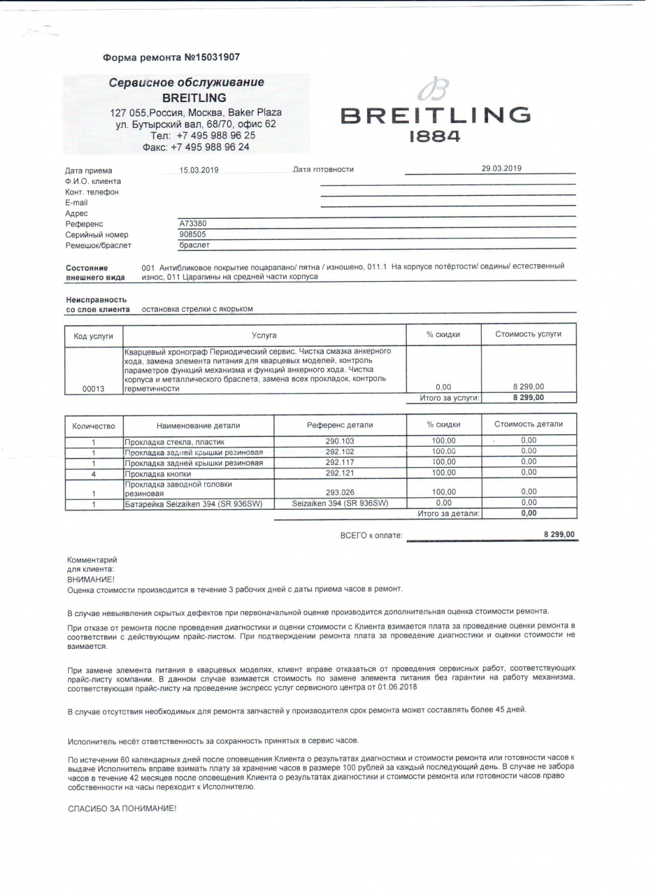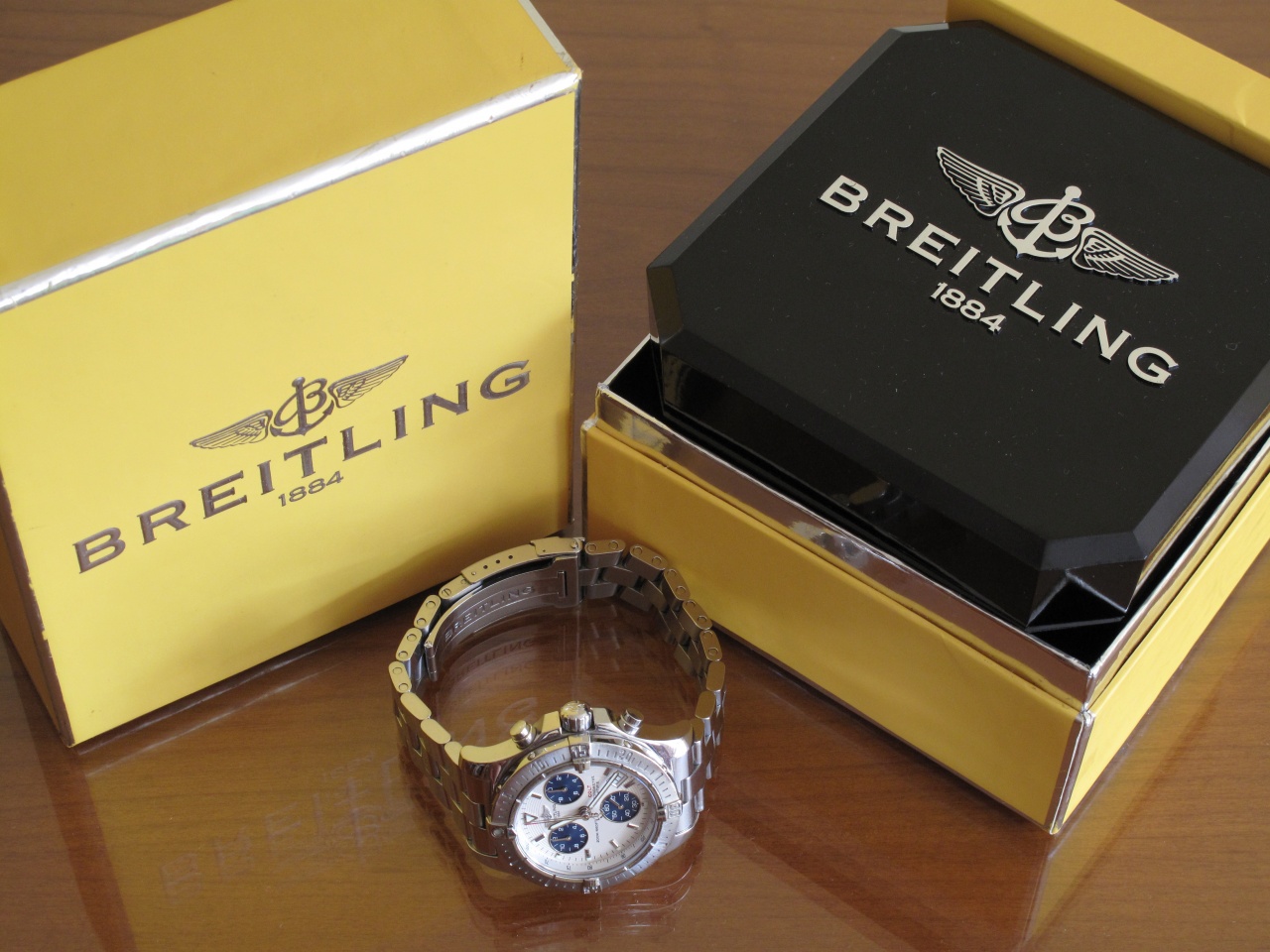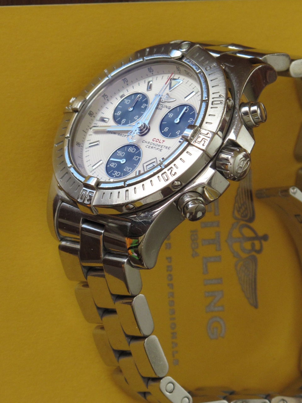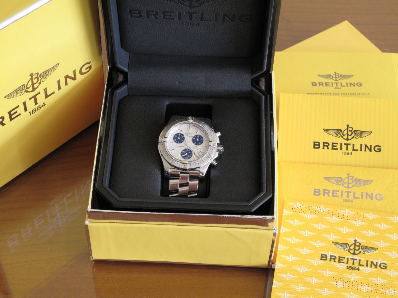 Куплены в 2006 году во Франкфурте. Носил очень аккуратно. В установленные сроки проходил техобслуживание в сервисном центре Breitling на Бутырском Валу в Москве. Последний раз с 15 по 29 марта 2019 г. Естественно, имеются все документы, выданные, как при продаже, так и при плановом техобслуживании. Часы находятся в Уфе. Никакие варианты обмена не рассматриваются.