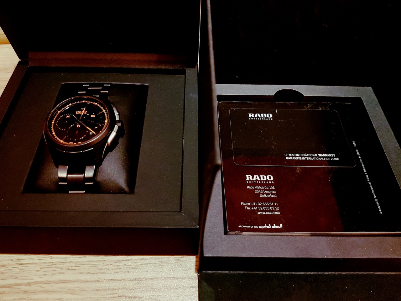 Корпус черного XXL-хронографа Rado HyperChrome диаметром 45 мм полностью изготовлен из high-tech-керамики, кнопки хронографа из титана, а заводная коронка выполнена из стали и каучука, стрелки из родия, счетчики хронографа и 12 делениями с люминесцентным покрытием, что придает часам утонченный, но спортивный вид. На отметке «4 часа 30 минут» расположена апертура даты. Дополняет модель трехрядный браслет из черной глянцевой высокотехнологичной керамики с тройной титановой застежкой и черными керамическими кнопками.[/font]