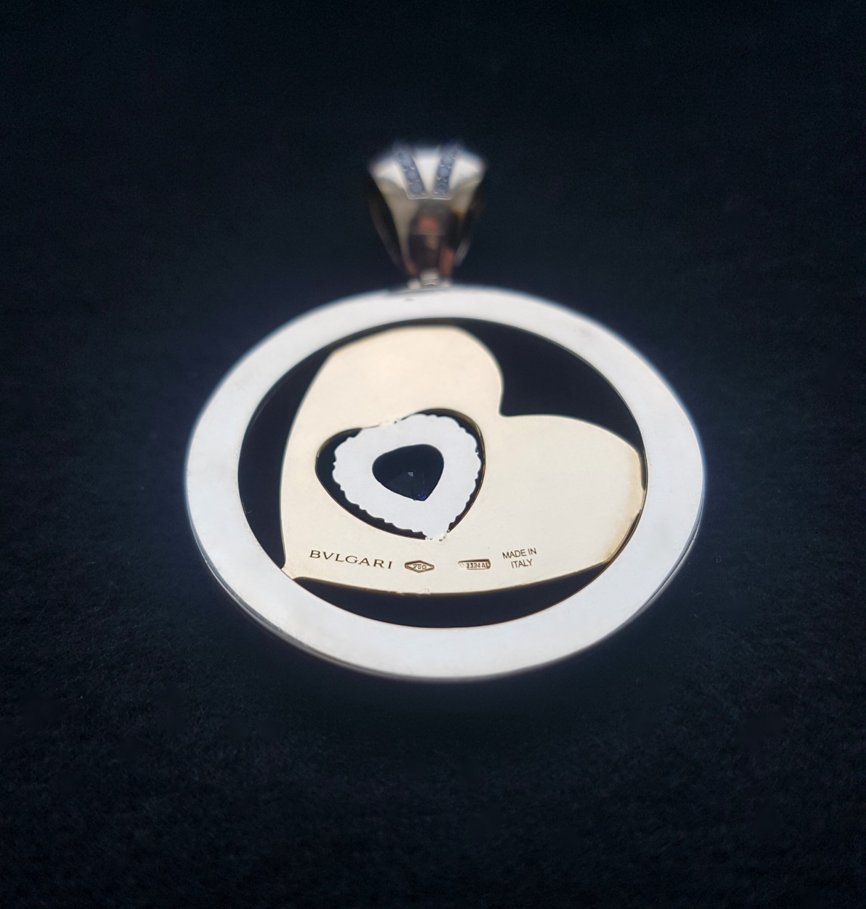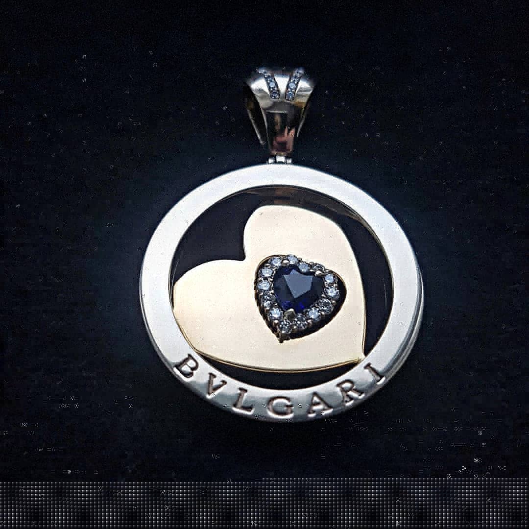 Кулон подвеска bvlgari ( БУЛГАРИ ) оригинальная, сделана в Италии , белое золото 750 проба , серцевина в виде сердца из розового золота 750 пробы , сапфир 1ct , бриллианты , диаметр 31мм, толщина по внешнему краю 3,2мм, вес 16,6 грамма, покупалась в Италии в фирменном магазине за 6700 евро, б/у, цена продажи составляет 3300 $ по курсу на день покупки. Любые проверки у ювелира. В комплекте только кулон. Находится в Санкт-Петербурге.