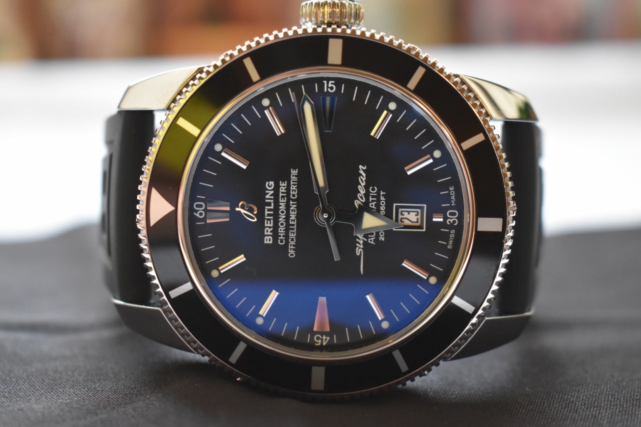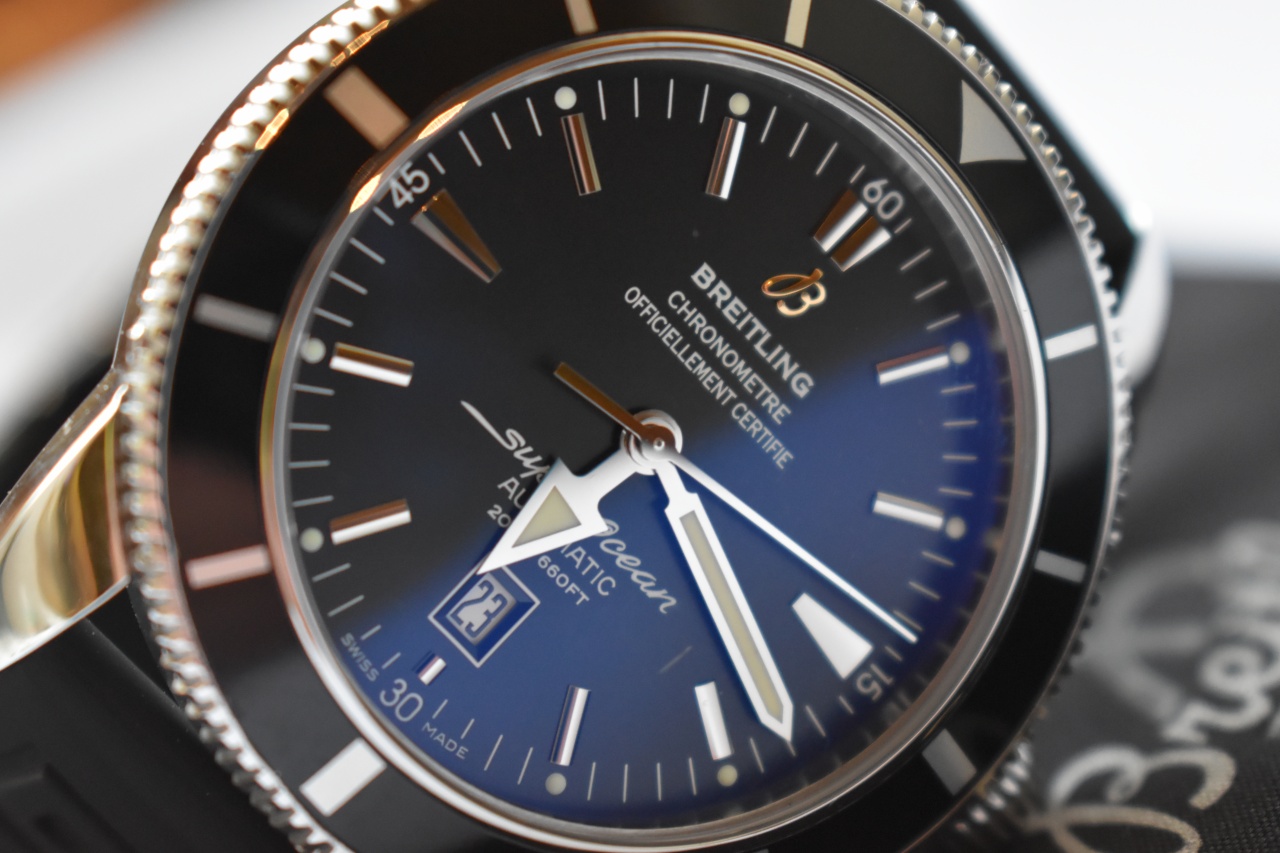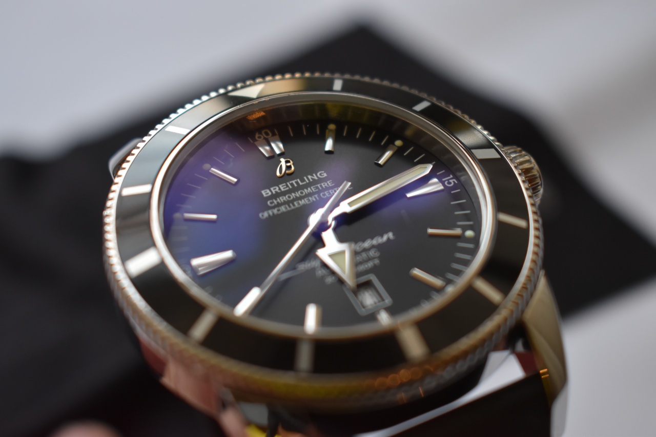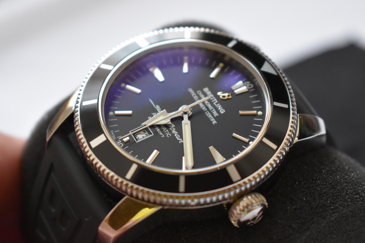Часы Breitling SuperOcean Heritage с установленным швейцарским механизмом Breitling 17, сертифицированным C.O.S.C., оснащены системами усиленной водозащиты, завинчивающейся заводной головка, специальными резиновыми прокладками.