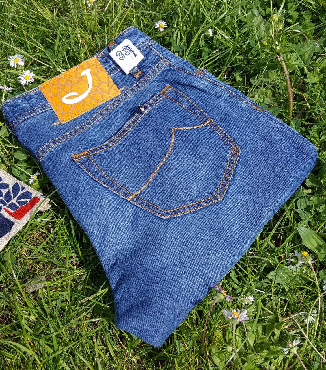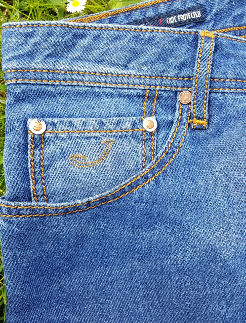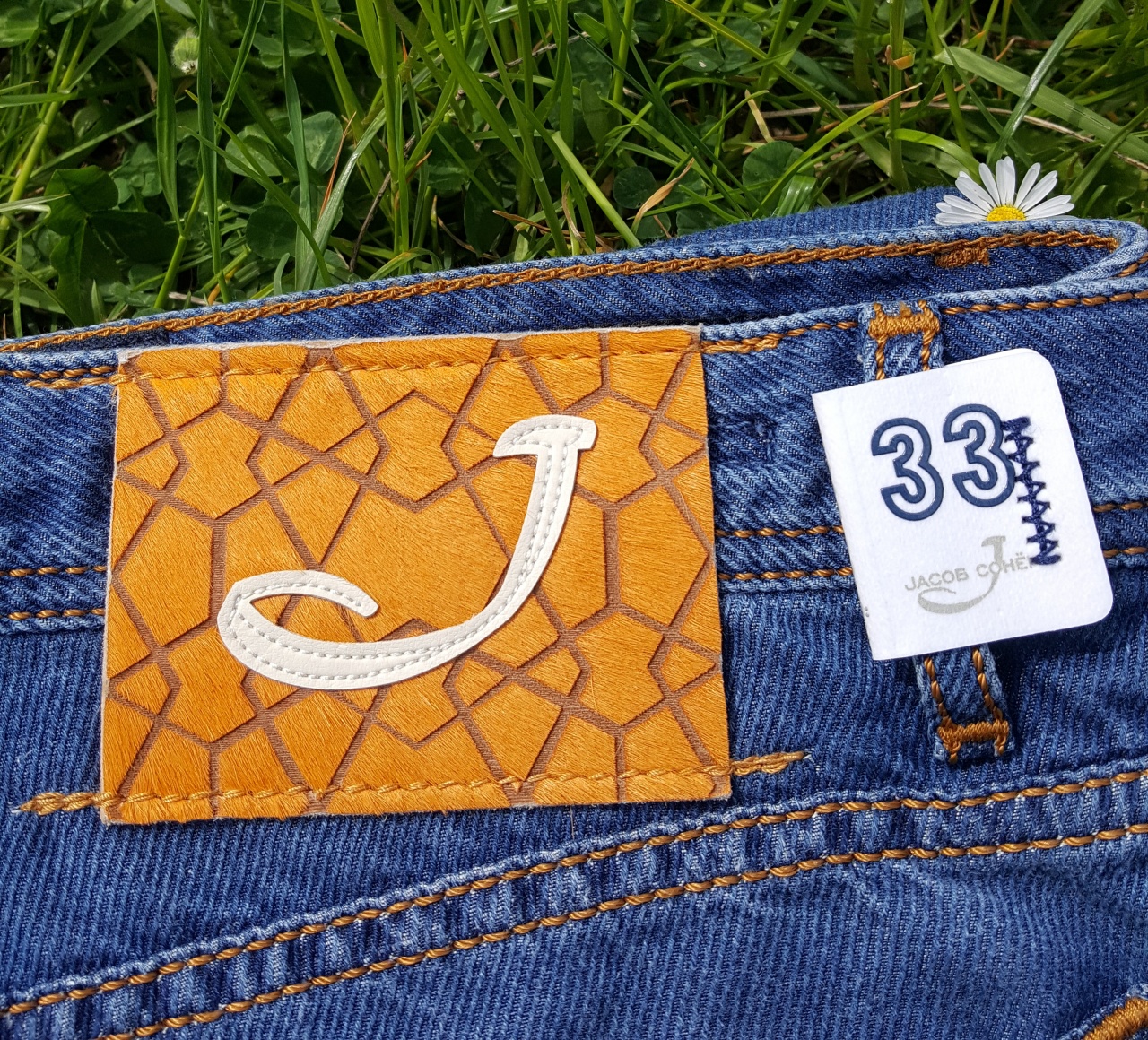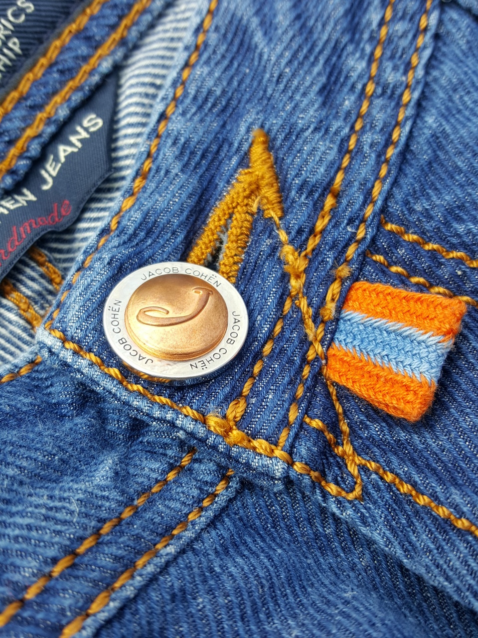 Сзади на правом бедре джинсы имеют фирменный ярлык из пони с логотипом марки Jасоb Соhёn - буквы «J».