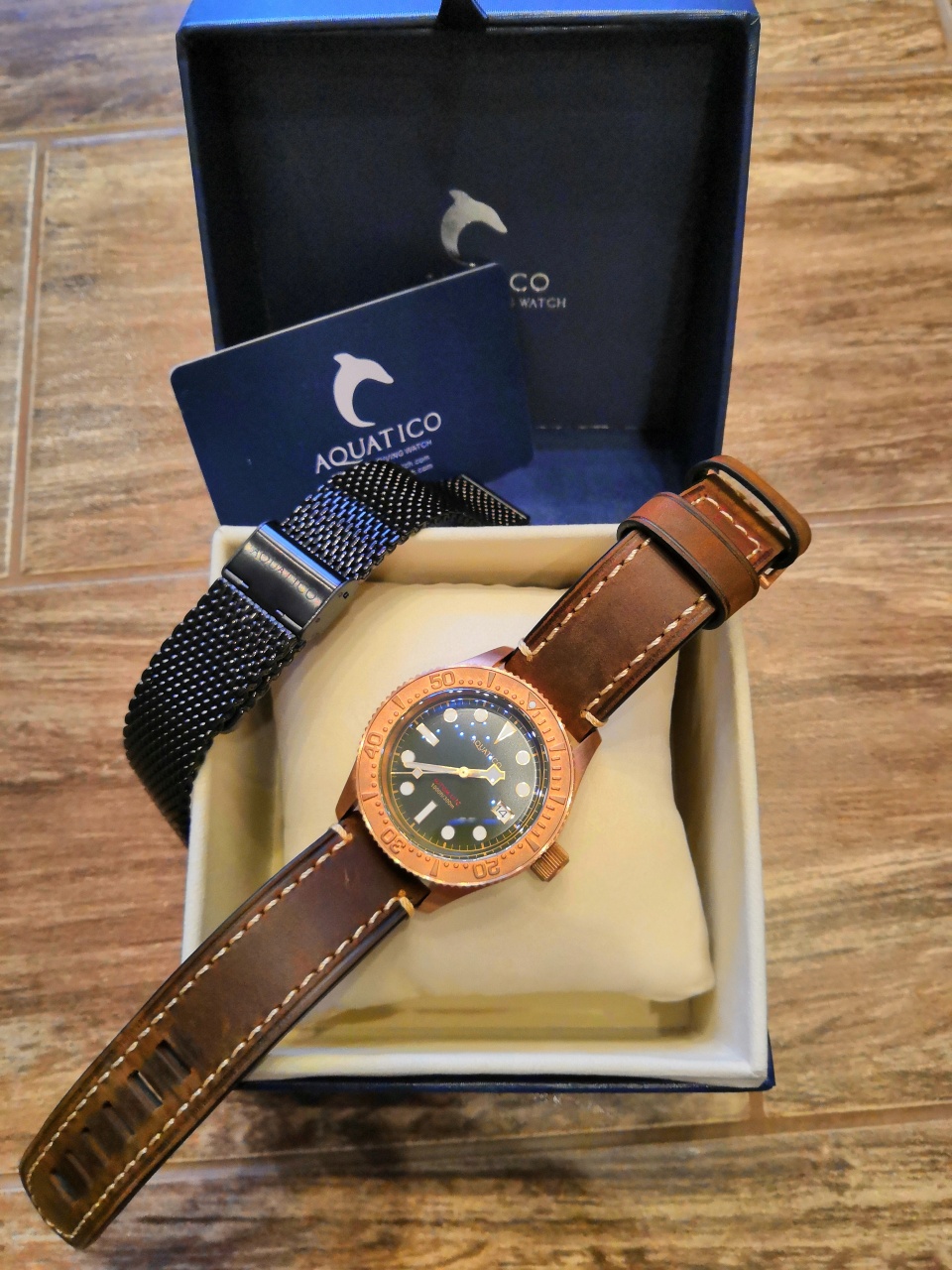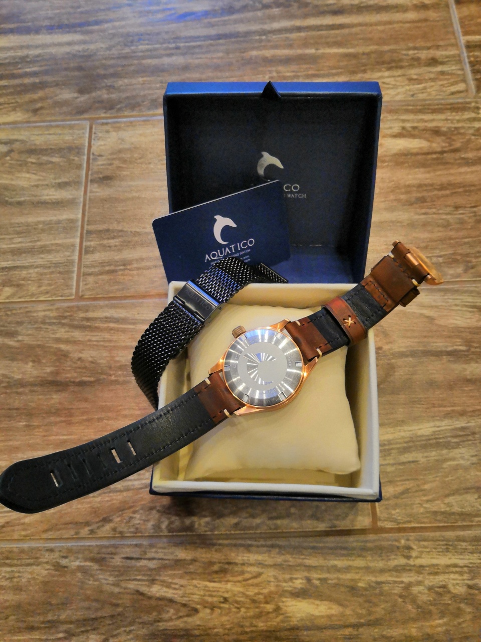 В продаже замечательные, не крупные, бронзовые часы Aquatico. Часы новые, пленку снял для фото. В комплекте к часам идёт родной стальной качественный браслет.