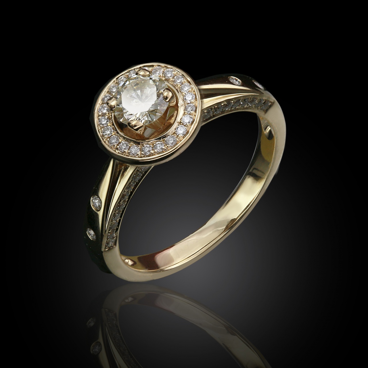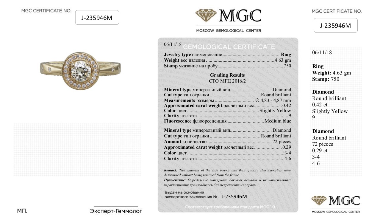 Кольцо из желтого золота с бриллиантами 0,71 карат (сертификат МГЦ)