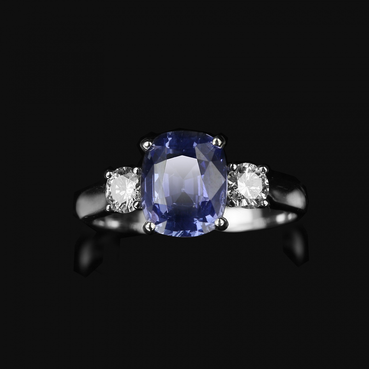 Кольцо из белого золота с сапфиром 2,04 карат и бриллиантами 0,32 карат.