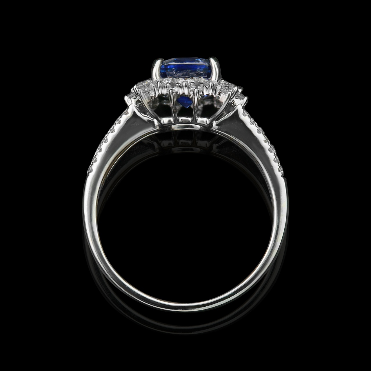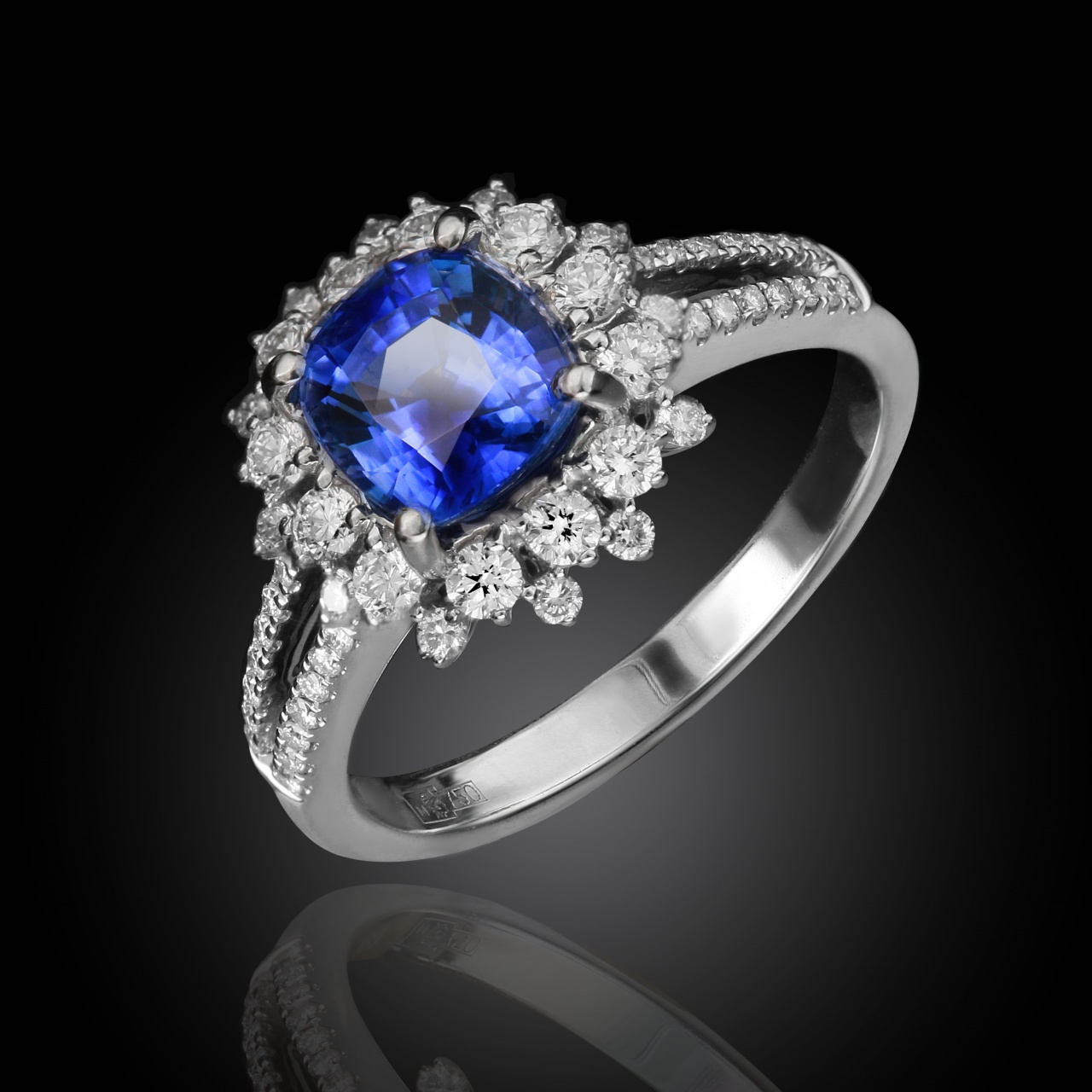 Кольцо из белого золота с сапфиром 2,25 карат и бриллиантами 0,63 карат(сертификат МГЦ)