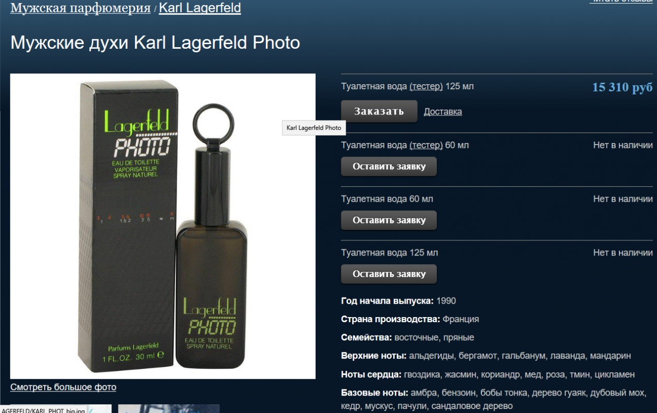 Редкий мужской парфюм Photo Karl Lagerfeld