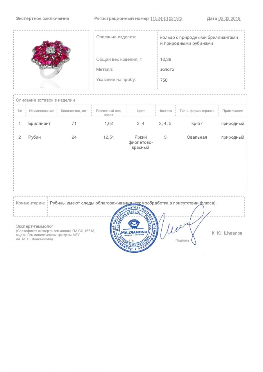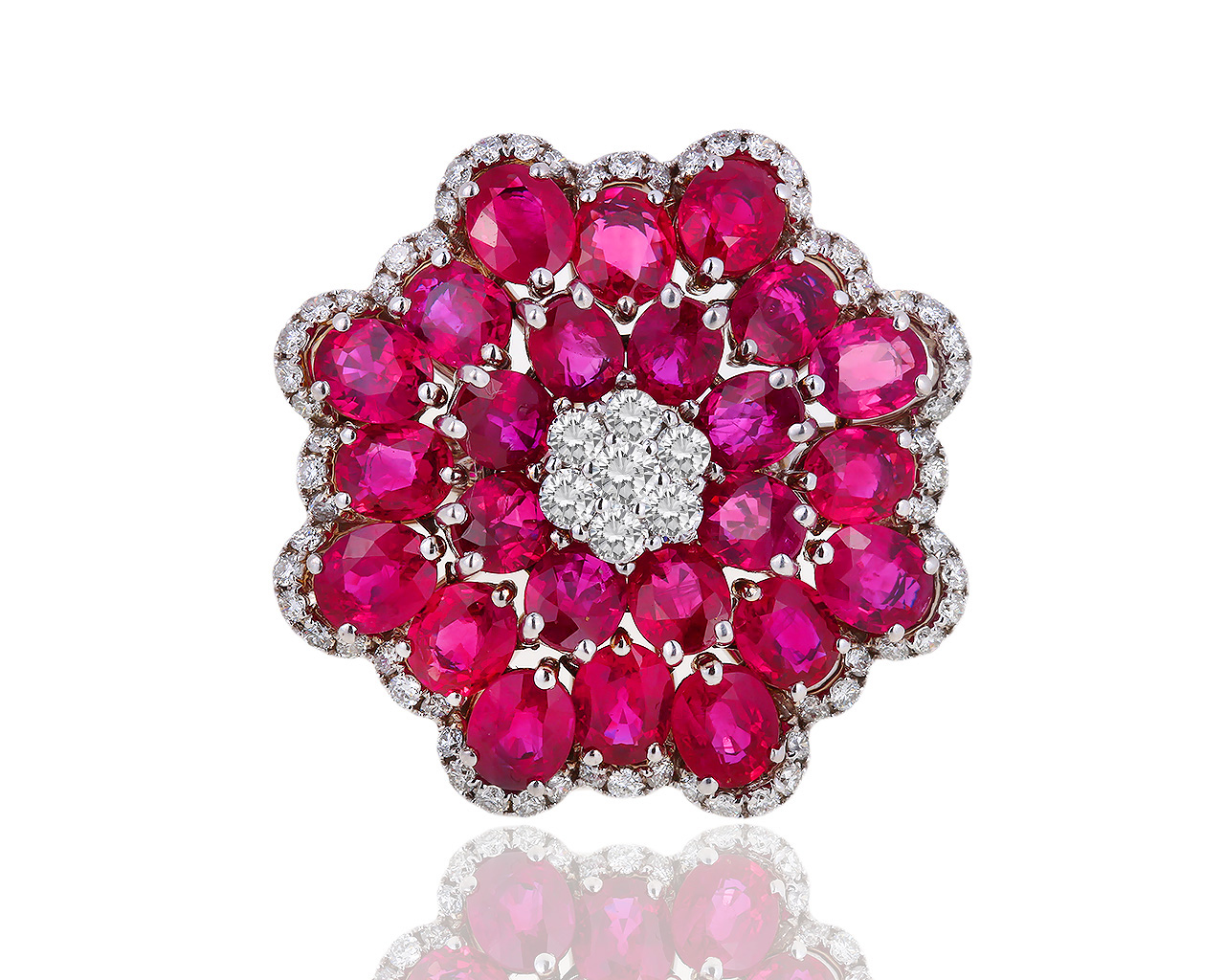Золотое кольцо с бриллиантами 1.02ct и рубинами 12.51ct