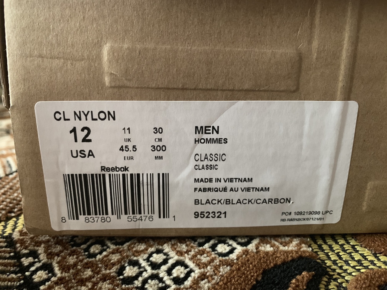 Кроссовки Reebok CL Nylon Black/Black/Carbon 952321. 12US.