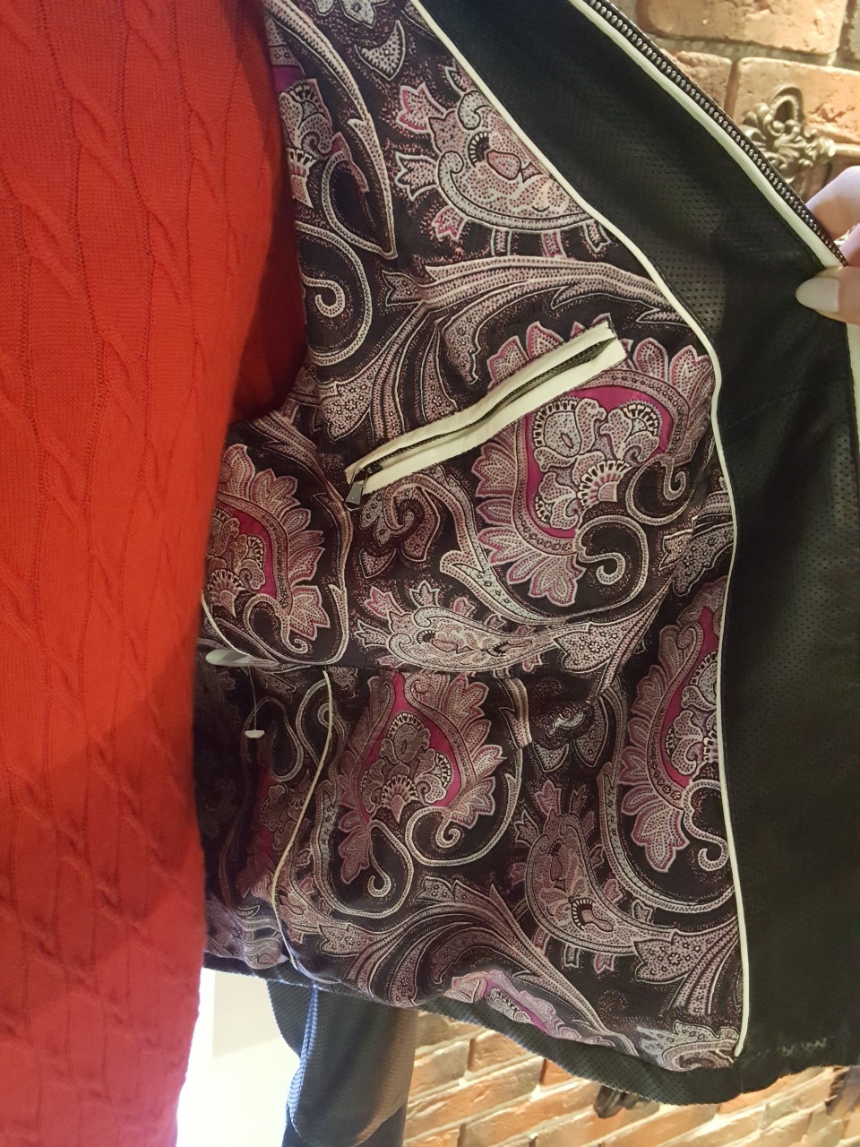 Подкладка курки изготовлена из 100% шёлка высочайшего качества выделки с очень красивым рисунком сиренево-чёрного цвета - "Пейсли и восточные узоры".