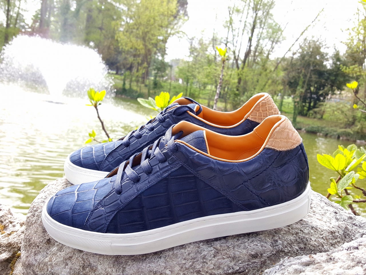 СУПЕР ЛЮКСОВЫЕ КЕДЫ ИЗ КОЖИ НИЛЬСКОГО КРОКОДИЛА ШЛИФОВАННОЙ "ПОД ЗАМШУ". ИТАЛИЯ