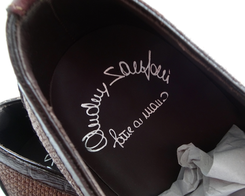 Обувь вручную окрашена, причем в традициях марки: не однородно, а с небольшим градиентом (патиной). Оттенок коричневого темнеет к мысу.