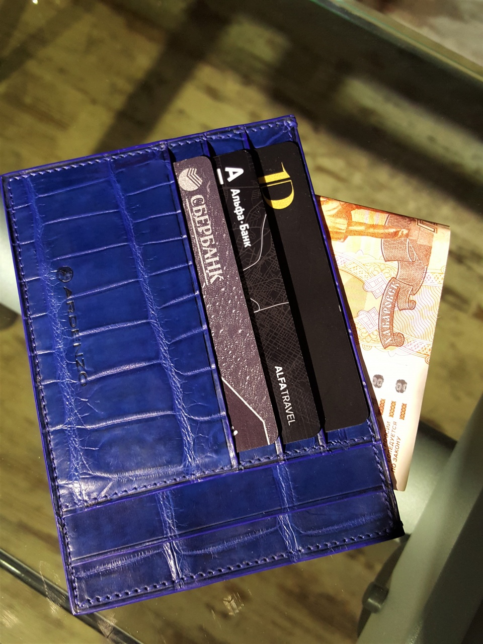 НОВЫЙ КАРТХОЛДЕР ИЗ КОЖИ АЛЛИГАТОРА. ЦВЕТ СИНИЙ. ИТАЛИЯ
