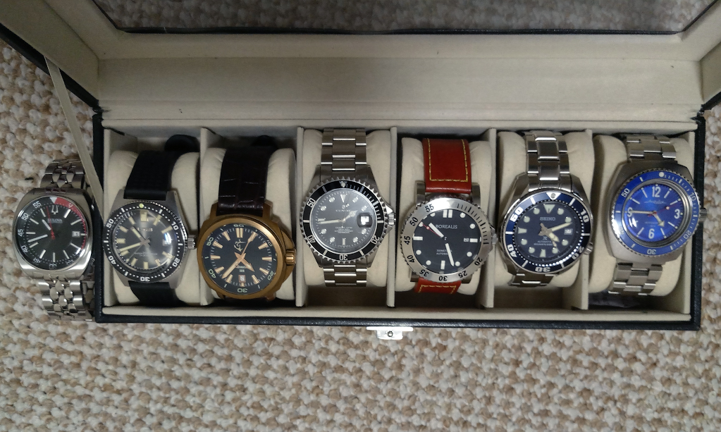 ORIENT Mako Blue EM65005D, SEIKO Orange Monster SRP309J, CASIO ProTrek PRW-2000-1E, CASIO G-SHOCK GW-M5610-1ER, Amfibia Reef 080494 "Лунная радуга", Orient Bambino V4 SAC08004D0 Blue, STEELDIVE SD1975 green, ADDIESDIVE AD2102