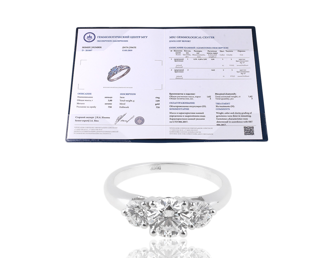 Идеальное золотое кольцо с бриллиантами 1.62ct