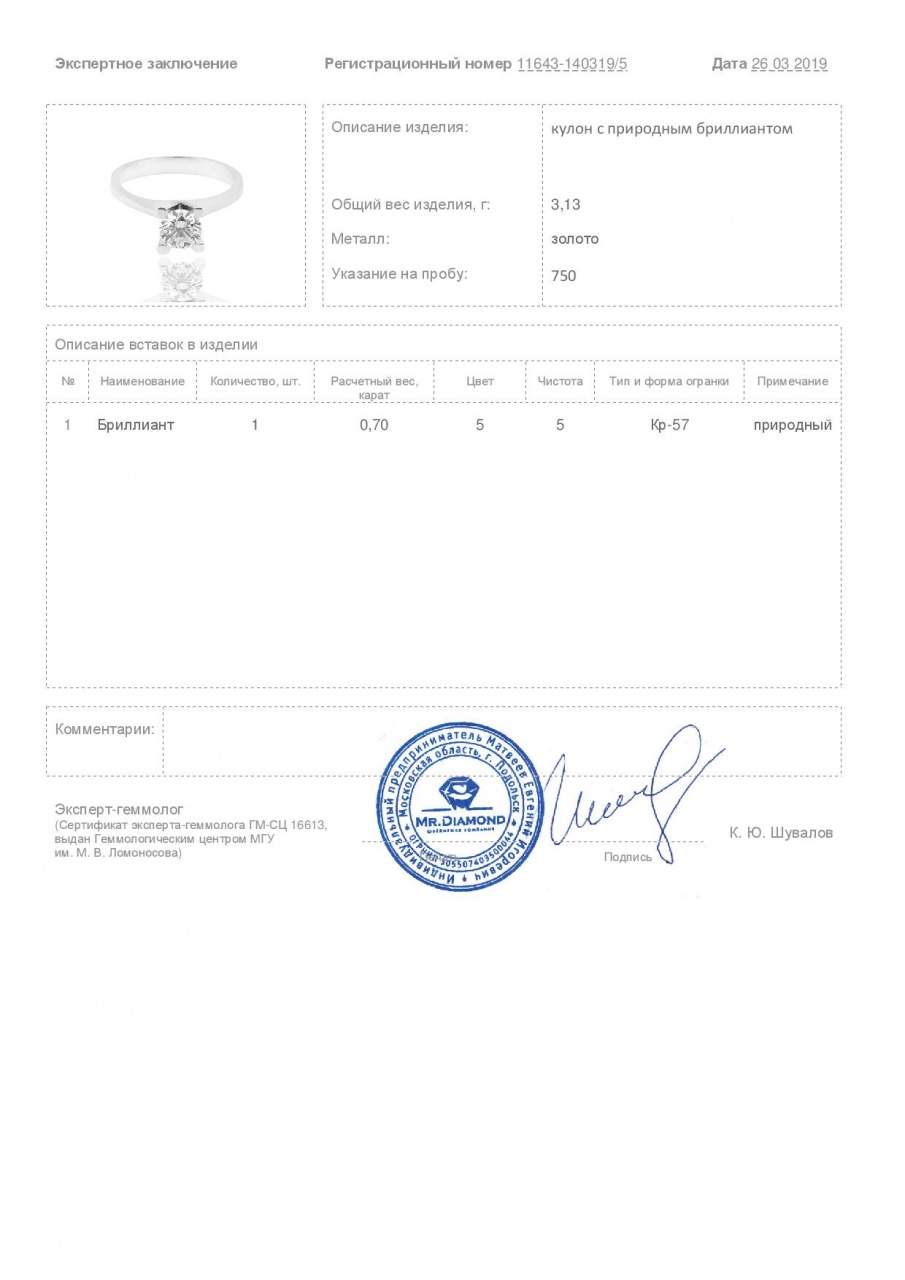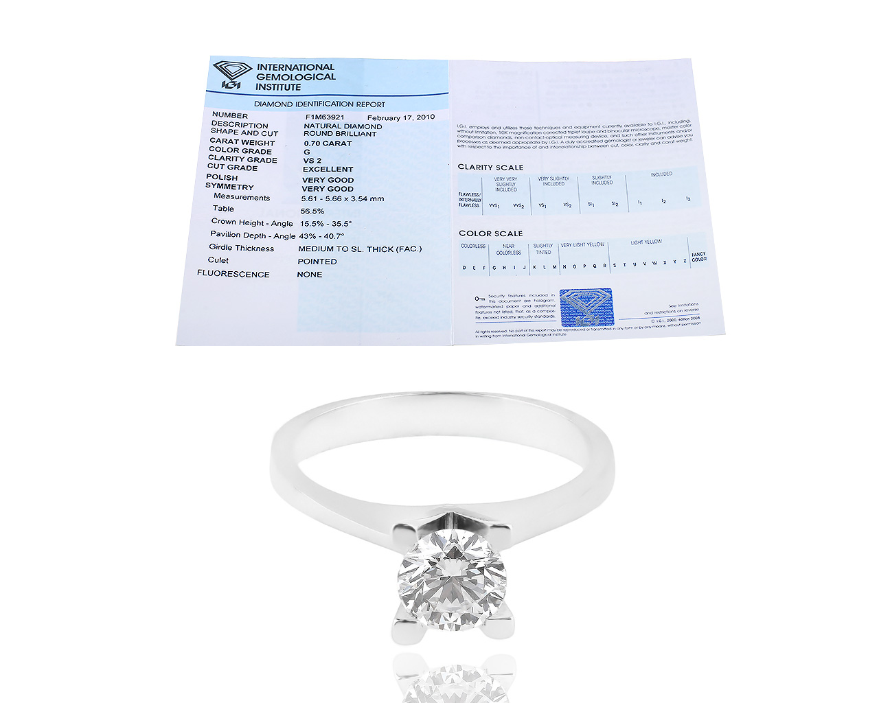 Помолвочное золотое кольцо с бриллиантом 0.70ct