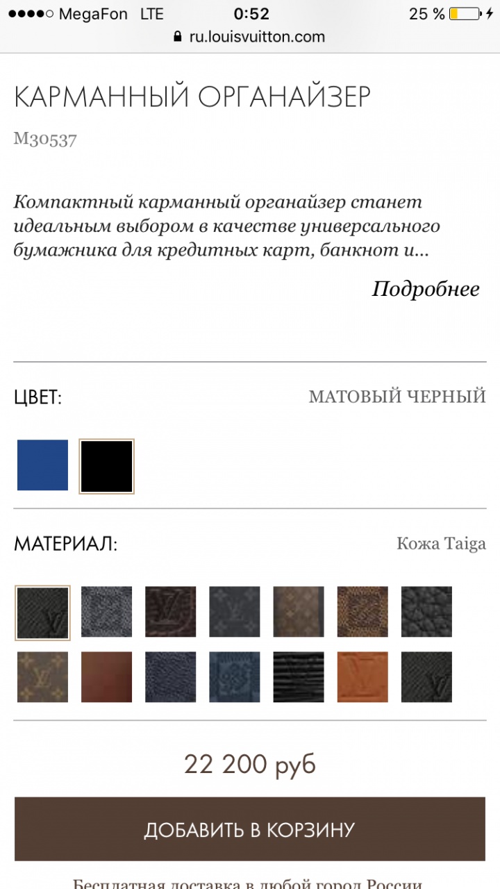 КАРМАННЫЙ ОРГАНАЙЗЕР LOUIS VUITTON TAIGA