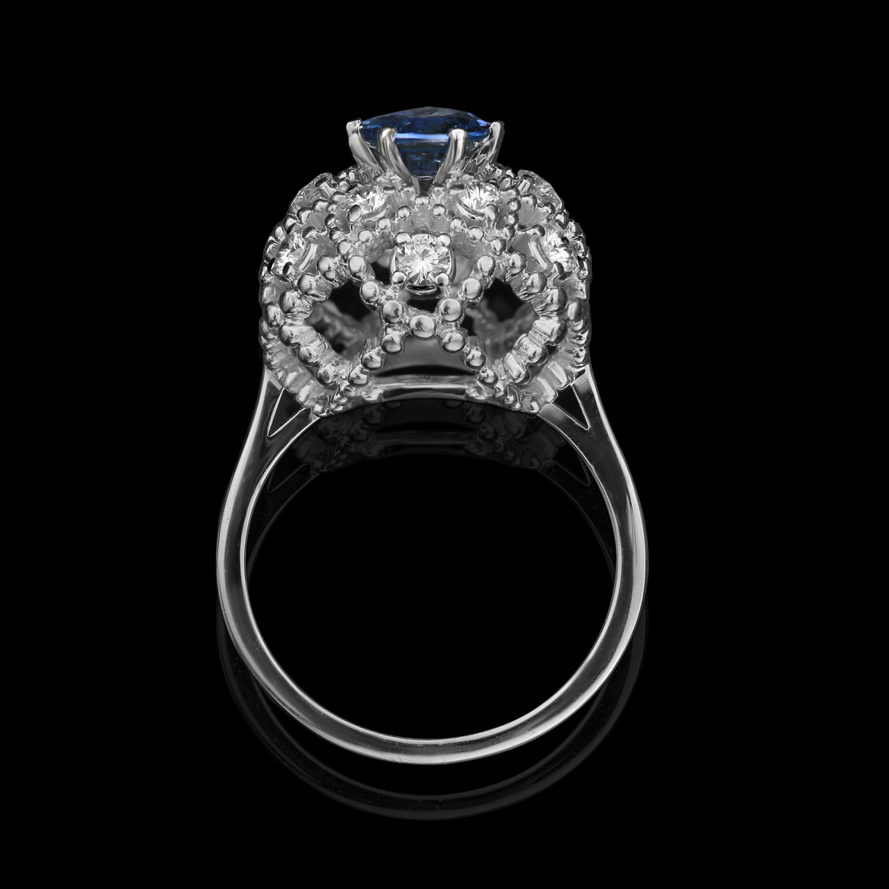 Кольцо из белого золота с сапфиром 0,93 карат и бриллиантами 0,58 карат