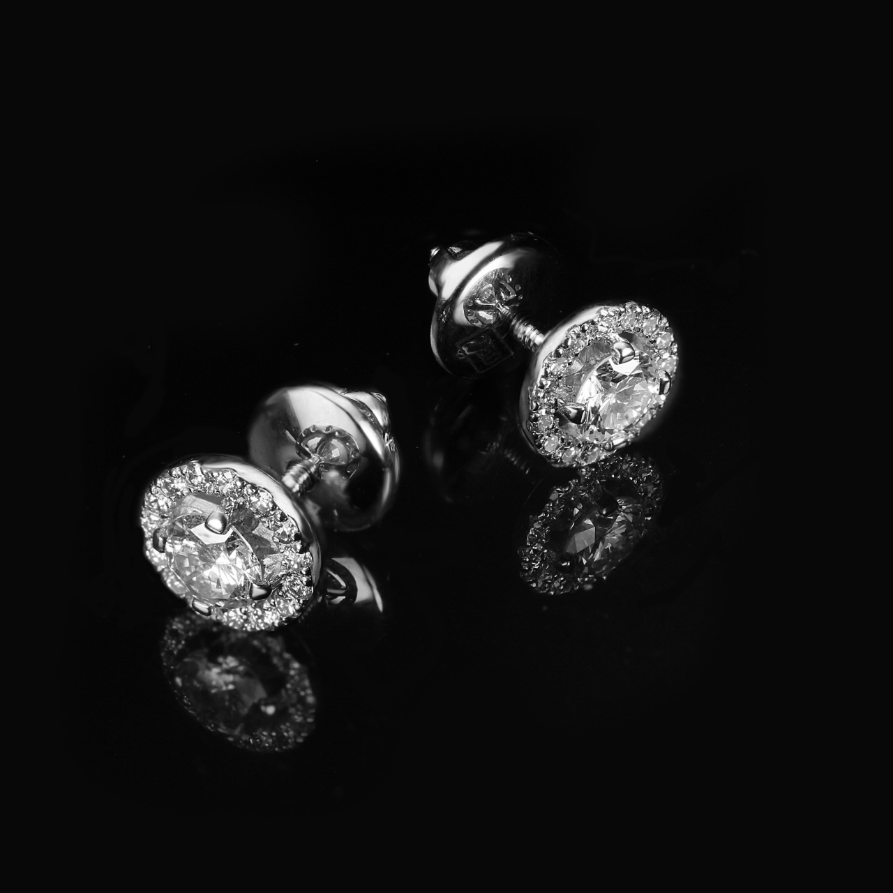 Серьги-пуссеты из белого золота с бриллиантами 0,85 карат (сертификат МГЦ)