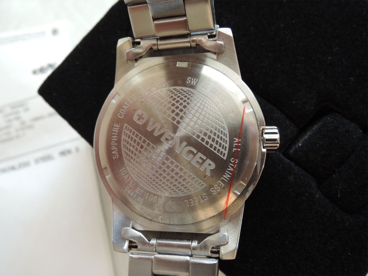 Вес 124 грамма. В темноте светятся. На головке перевода стрелок нет креста, с нижней стороны необычный логотип Wenger вместо швейцарского ножа.