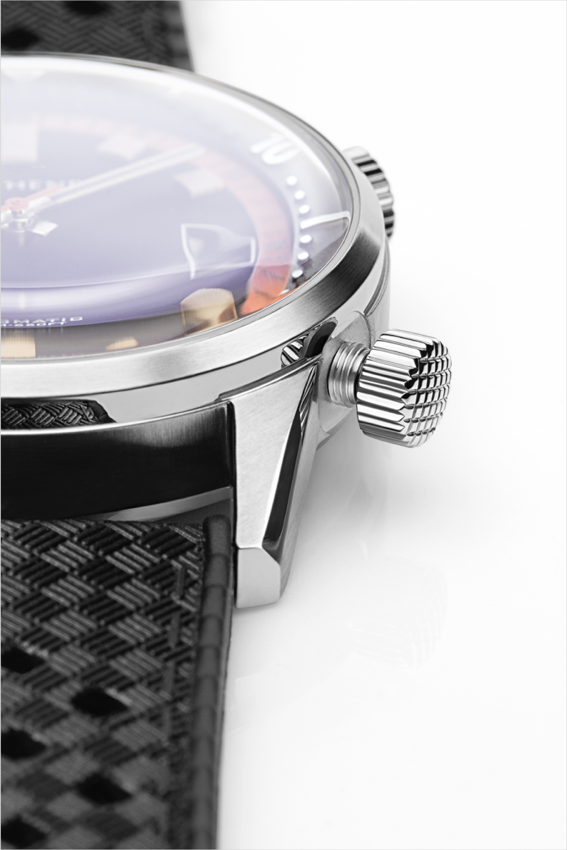 Головка на 2 часа вращает внутренний вращающийся безель, головка на 4 часа - завинчивающаяся - регулирует дату и время;