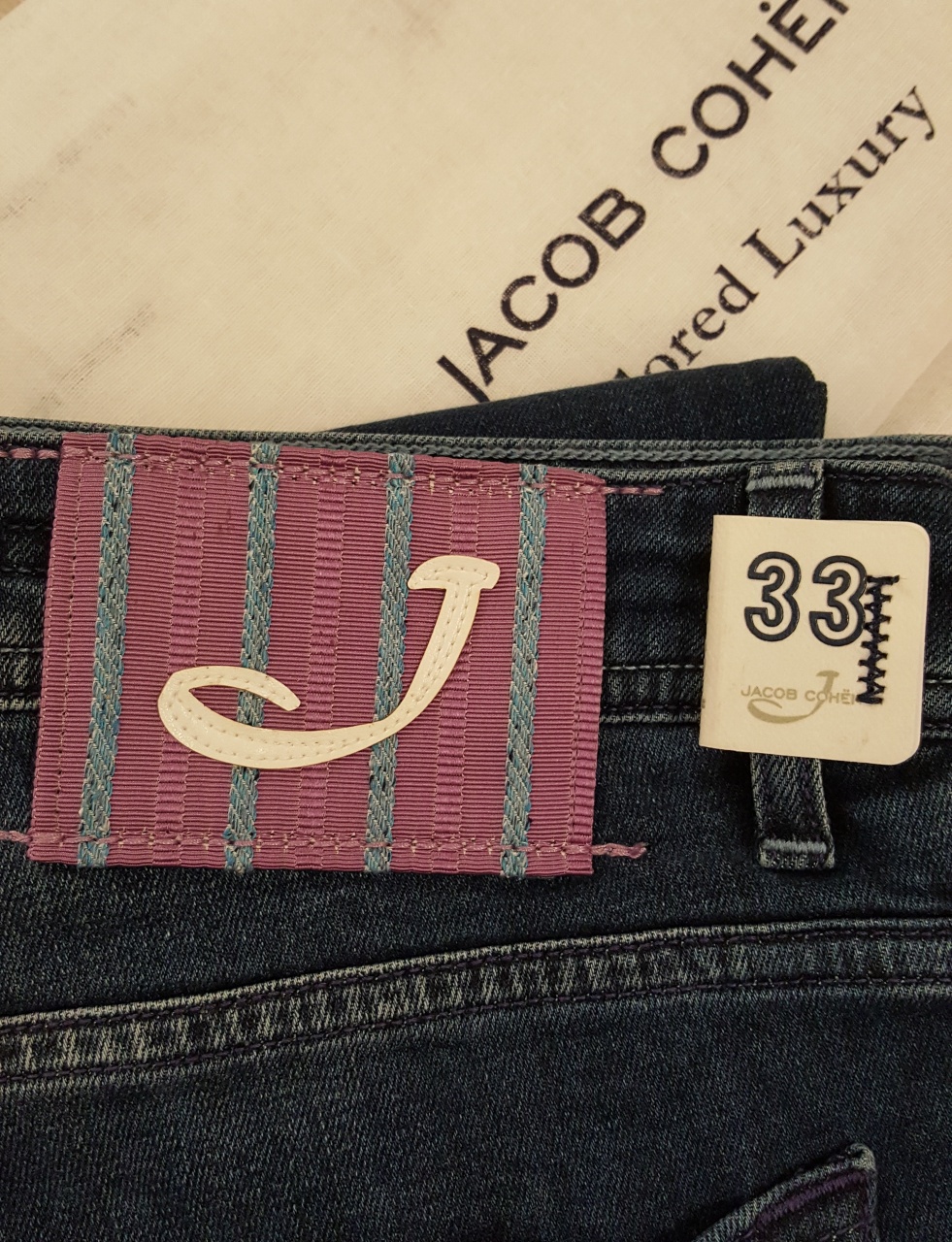 Сзади на правом бедре джинсы имеют фирменный ярлык из шелка сиреневого цвета с логотипом марки Jасоb Соhёn - буквы «J».