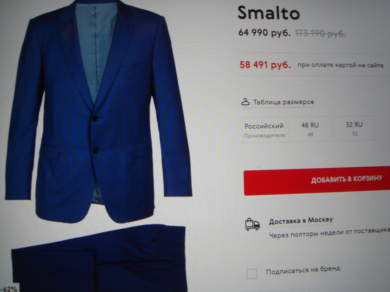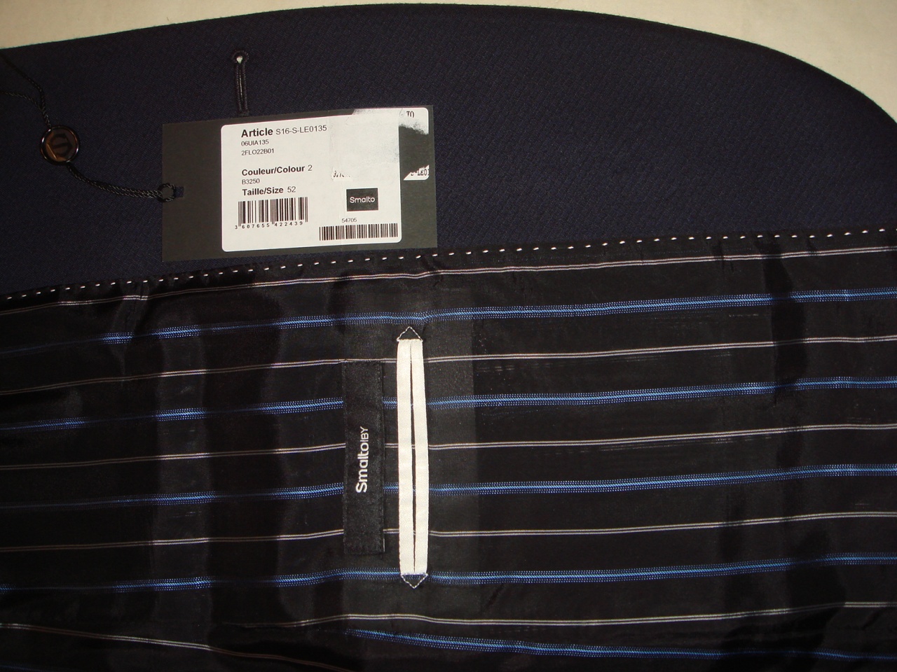 Продается новый мужской костюм французского бренда SMALTO с элементами ручной работы, превосходного исполнения, шерстяной муслин, ткань темно-синего цвета , воротник с лацканами , однобортная модель, 2 пуговицы с логотипом бренда, один нагрудный кармашек , прорезные карманы с клапанами, два внутренних кармана, двойной разрез сзади, на красивой подкладке в контрастную полоску, классическая посадка на талии( брюки), внутри на подкладке , состав : 100% натуральная шерсть virgin wool super 130’S, размер 52(IT), производство Италия Бренд по достоинству оценят любители одежды класса де люкс, изделие смотрится дорого и стильно, отличное сочетание цена-качество.