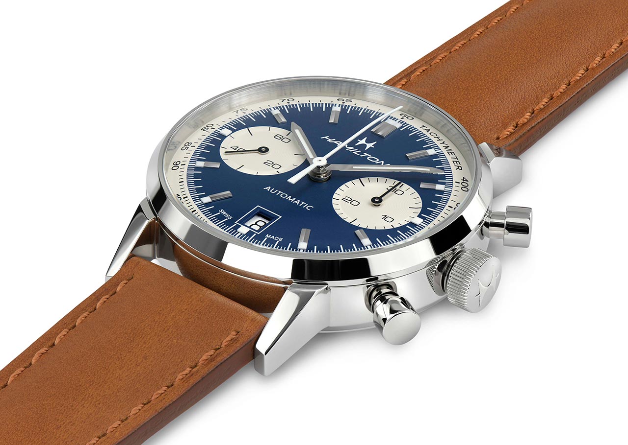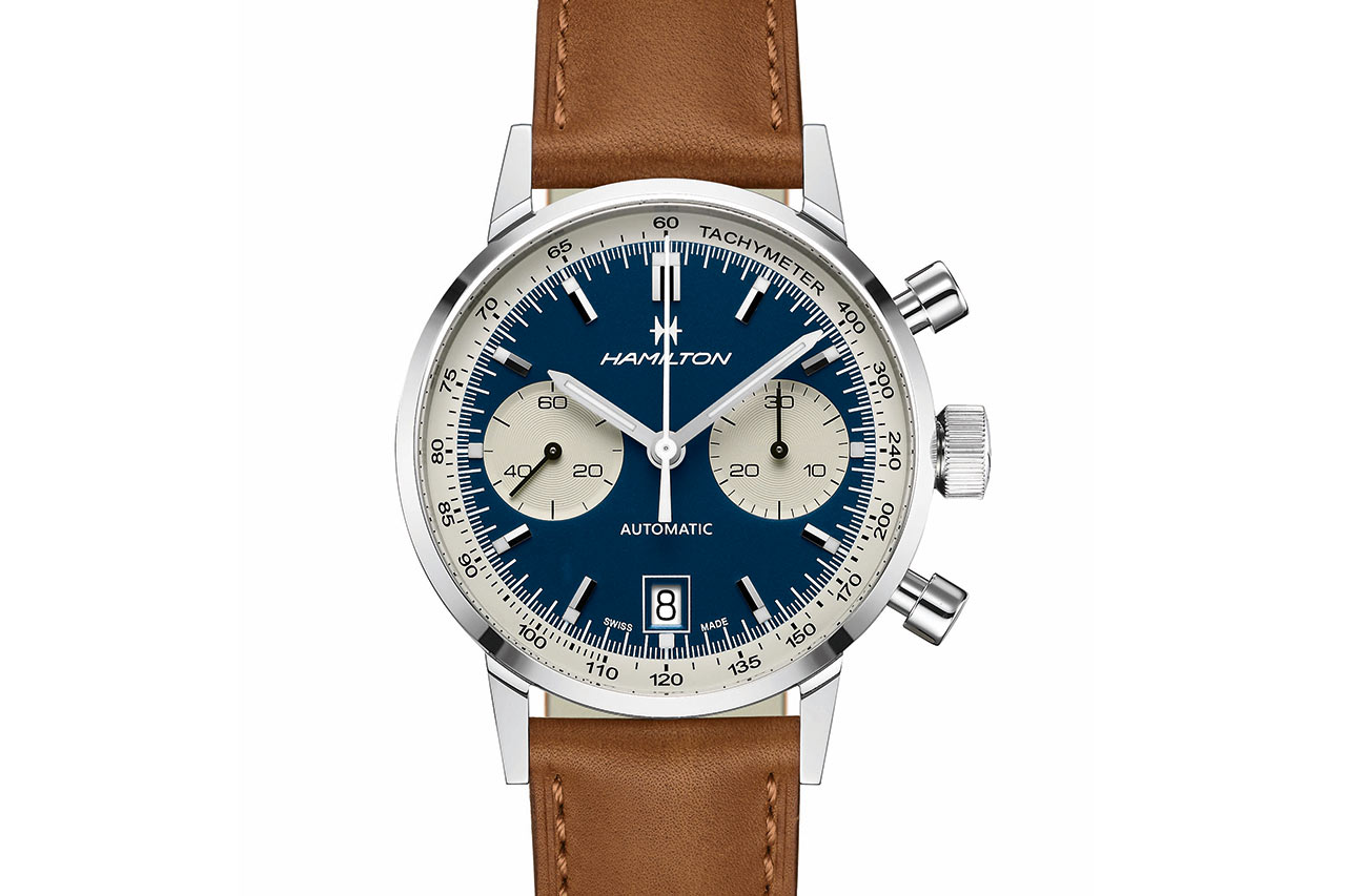 Дизайн новой модели Intra-Matic Auto Chrono 40 mm Blue Dial (Ref. H38416541) от швейцарской часовой компании с американскими корнями Hamilton выполнен в элегантном спортивном стиле и вдохновлен дизайном исторического хронографа А, который был создан в 1968 году.