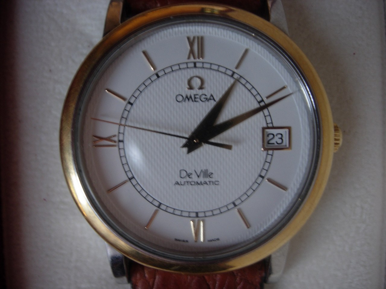 Костюмная классика, сталь-золото. Куплены в 2002 году в "Консуле", есть товарный чек. Репассаж в мастерской Бабанина в 2007 году (есть квитанция). Ремешок оригинальной комплектации (на нём часы не носил). Прилагается дополнительная оригинальная застёжка для ремешка. Коробка трачена временем.