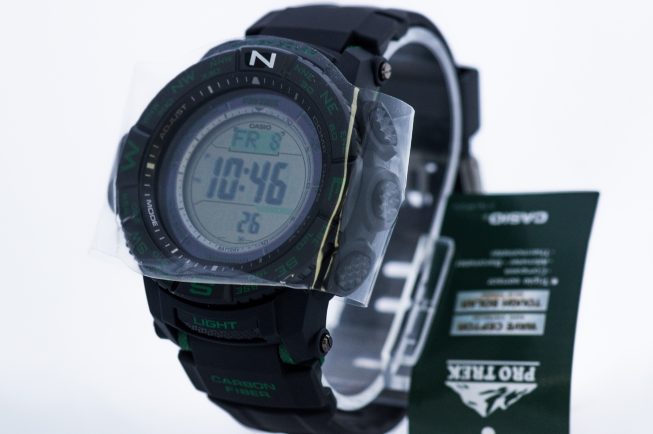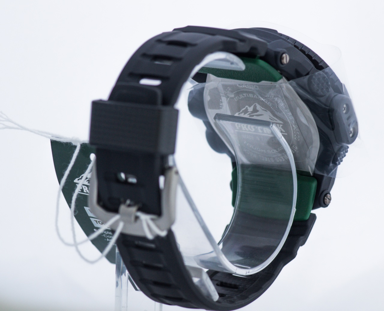 Популярная моделька на максималках: помимо альтиметра, барометра, термометра, компаса и хронографа часы примечательны тем, что в отличие от стандартных PRW-3500 у них есть карбоновый ремень (очень приятный по ощущениям) и сапфировое стекло.