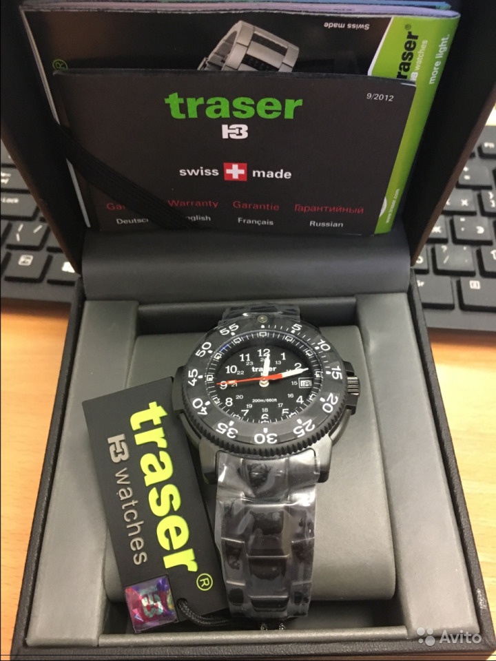 Продаю в Москве Traser Black Storm Pro P6504 на стальном браслете. Водозащита 200 метров, сапфировое стекло, однонаправленный карбоновый безель, корпус и браслет сталь с pvd покрытием, тритиевая подсветка trigalight на стрелках и часовых метках, механизм Ronda 715, NSN (nato stock number) номер на задней крышке, SWISS MADE. Часы в коробке и с документацией, на гар-ии (3 года, до декабря 2021). Данная модель часов, вопреки своей сверхнадёжности и удачному исполнению к, сожалению, снята с производства. Данная модель часов протестирована на точность хода при стрельбе из автоматического оружия. Принята на вооружение британским войсковым спецназом. Возможно отправить в любой город за счёт покупателя Почтой России или ТК.
