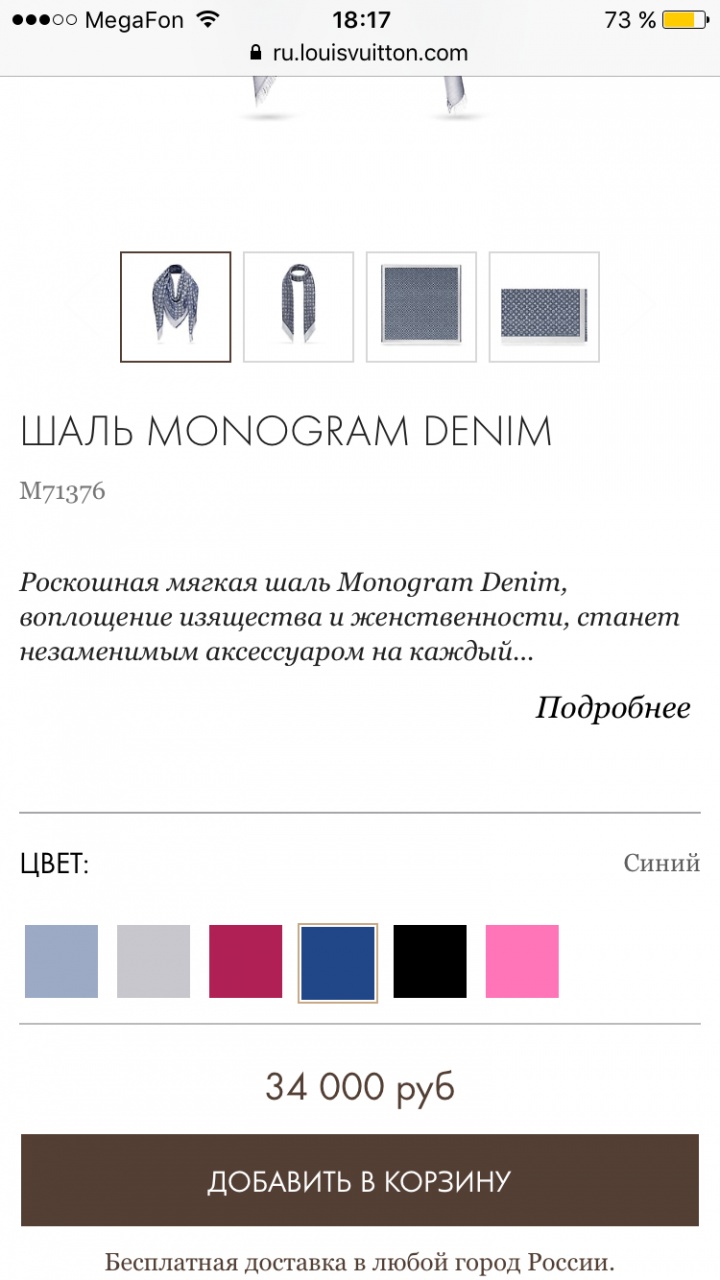 РОСКОШНАЯ ШАЛЬ LOUIS VUITTON MONOGRAM DENIM