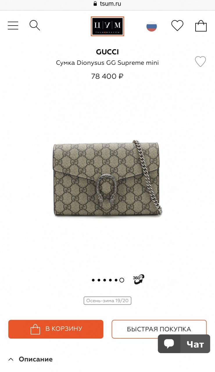 GUCCI Dionysus GG Supreme Chain Wallet. Женская сумка. Как новая