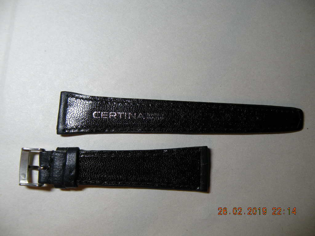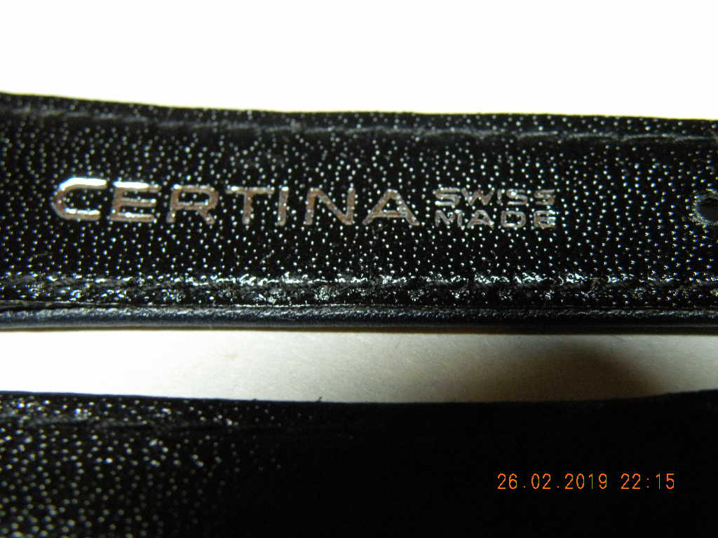 Предлагаю ремешок для часов Сертина (Certina). Кожа, строчка белая, цвет - иссиня-черный, размеры 20 х 14, на пряжке фирменный логотип, на внутренней стороне надпись certina swiss made, что свидетельствует об аутентичности изделия. Ремень ультраредкий, удача для того, кому нужно. Считаю, что на женские часы крупного размера.