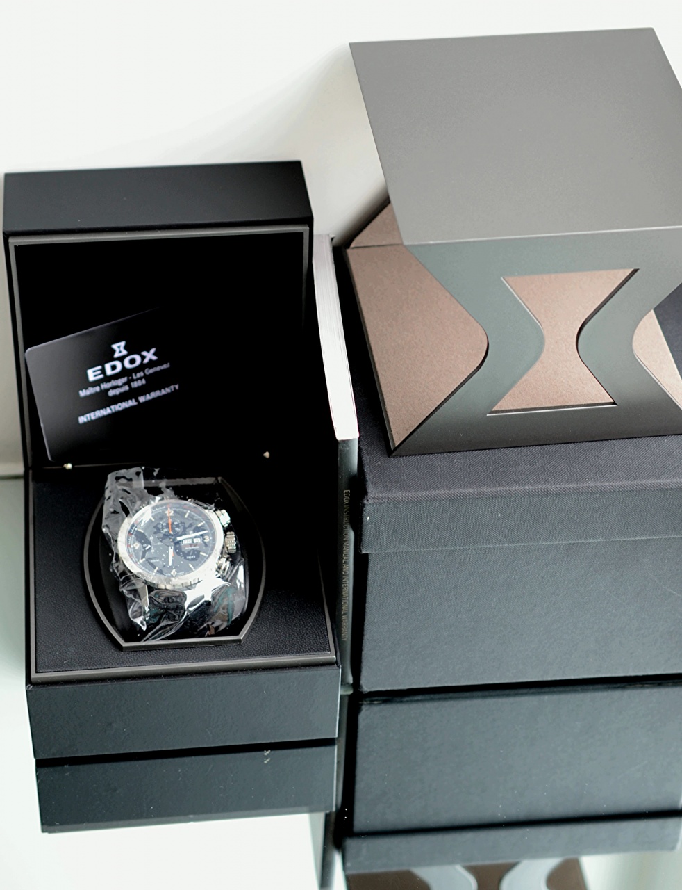 На счету легендарной мануфактуры, основанной в 1884 г. в Швейцарии, ряд уникальных открытий: в 1961 г. создаются часы, установившие новые стандарты для противоударности и водонепроницаемости, в 1970 г. были созданы часы, показывающие время суток в 50 мировых столицах, в 1998 г. - самые тонкие в мире часы с календарем, толщина калибра составляет 1,4 мм. Мировой рекорд бренда EDOX является непревзойденным до сих пор.