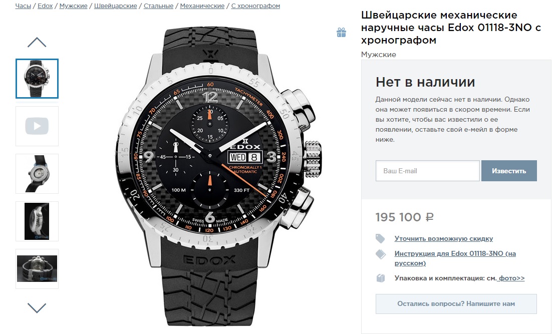 Великолепные спортивные часы большого диаметра с отличным функционалом. EDOX - это один из самых заслуженных и уважаемых часовых брендов современности.