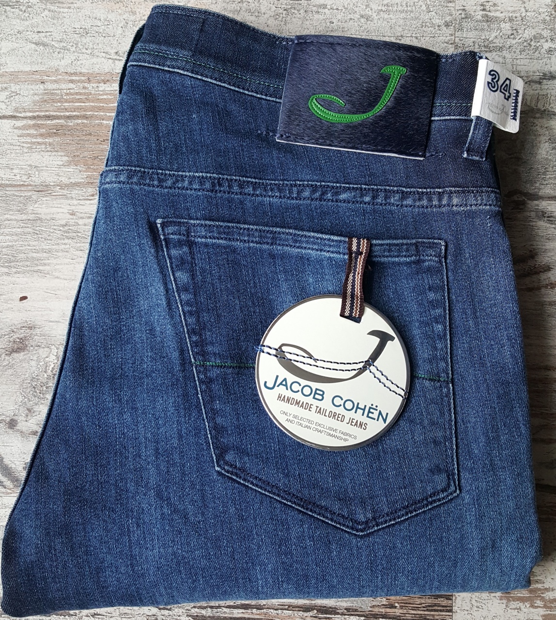 Сзади на правом бедре джинсы имеют фирменный ярлык из пони синего цвета с логотипом марки Jасоb Соhёn - буквы «J».