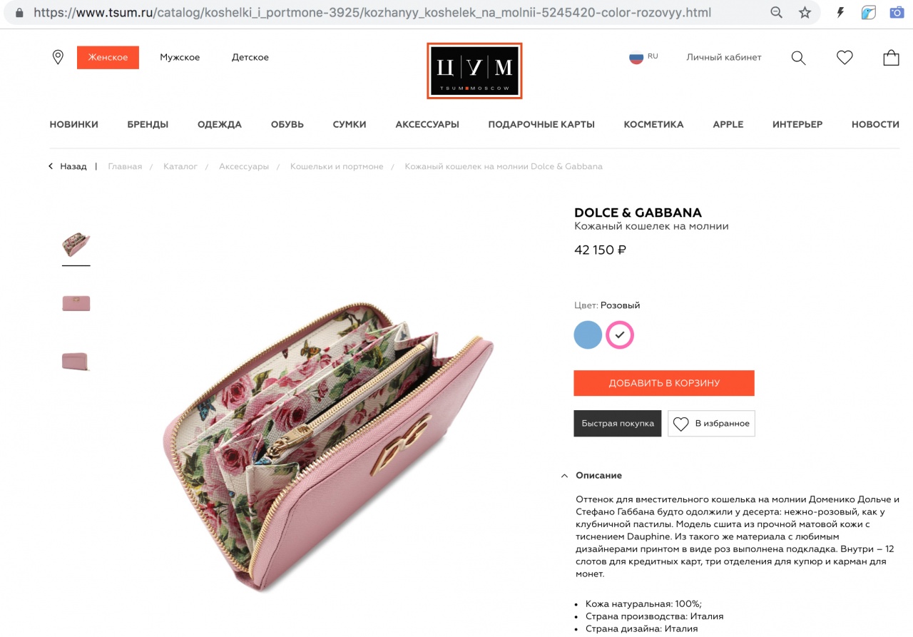 Новое женское портмоне на молнии от Dolce & Gabbana, Италия.