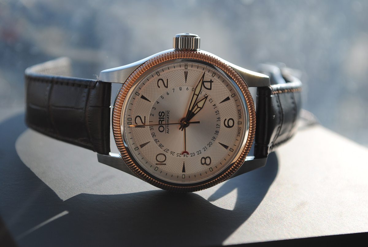 Калибр: Oris 754, разработка Oris на базе SW 200-1, автоподзавод, запас хода 38 часов, колебания: 28'800 A/ч, 4 Гц, камней: 26