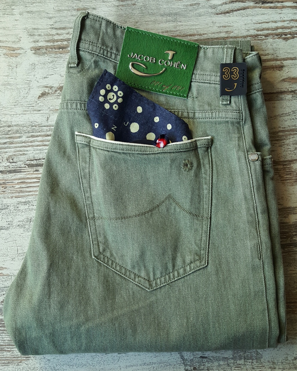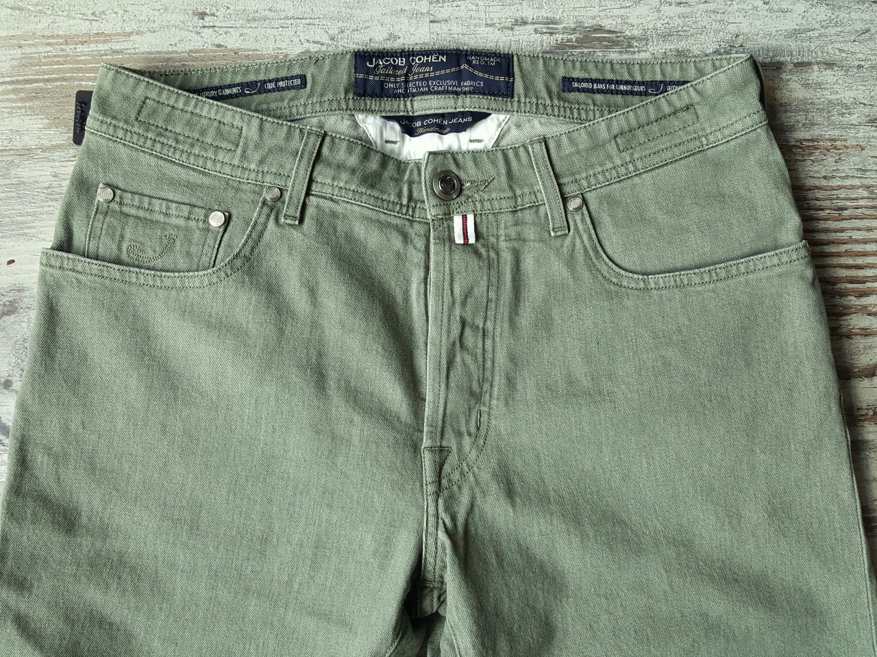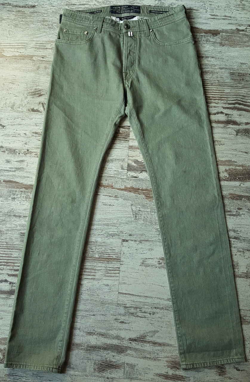 ЛЕТНИЕ, СУПЕРТОНКИЕ ДЖИНСЫ JACOB COHEN, КРАСИВОГО ОЛИВКОВОГО ЦВЕТА. ИТАЛИЯ