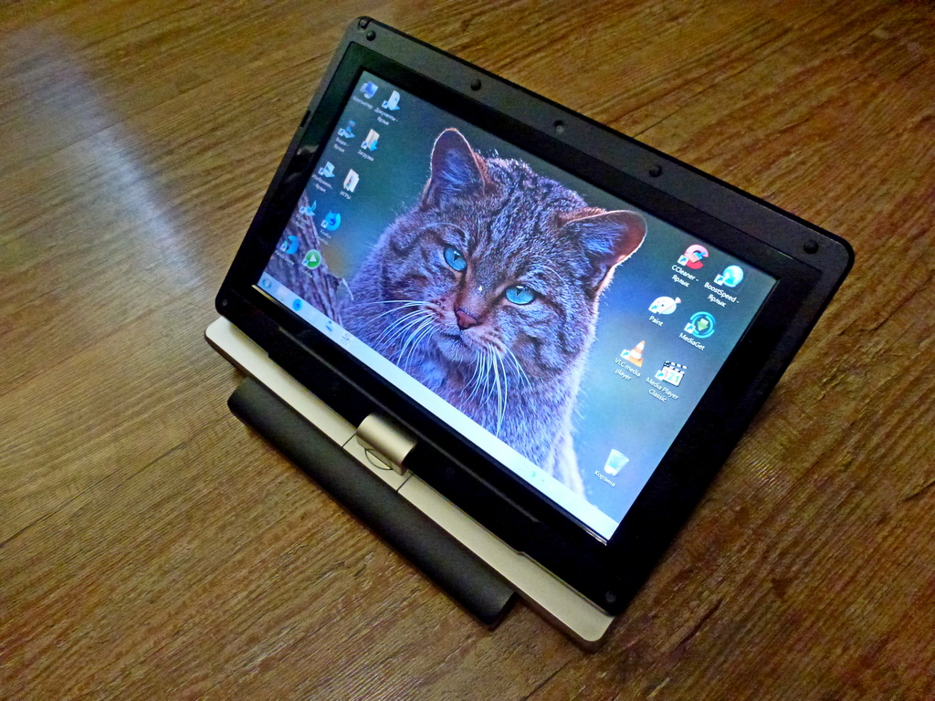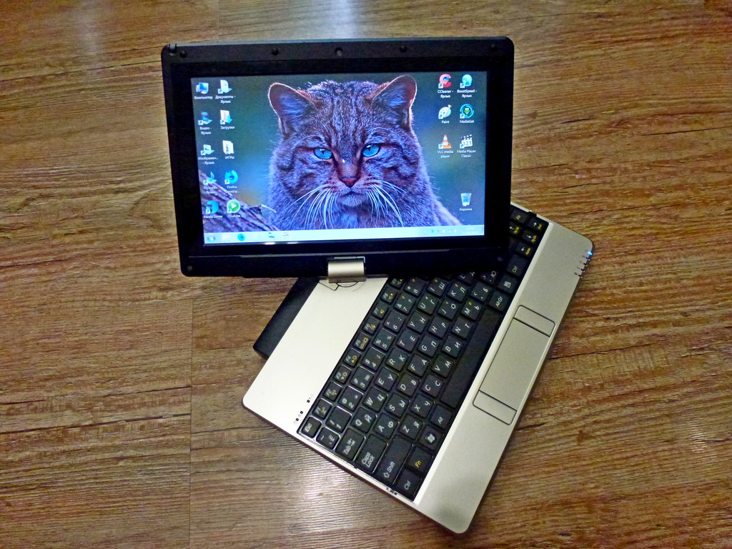 В продаже, 10.1 дюймовый ноутбук - трансформер GIGABYTE T1005, на двухъядерном процессоре Intel Atom N550 с вращающимся в двух плоскостях сенсорным дисплеем с разрешением 1366 х 768 пикселей, HD+ (резистивная технология), 2 Гб оперативной памяти, SSD ёмкостью 64 Гб, встроенная графика Intel + видеоадаптер Broadcom Crystal HD. Порты USB 3.0 и USB 2.0, ESATA / USB Combo, кардридер 4-в-1, 1.3-мегапиксельная камера, Ethernet 10/100/1000 Мбит/с, Wi-Fi, стилус с креплением в экране. Акуммулятора хватает на 3-4 часа активного использования. В отличие от современных ноутбуков, Имеется полный доступ ко всем слотам расширения. Установлена Windows 7 Home. Обслужен и готов к работе. Прекрасно работает с Linux Ubuntu и Linux Mint, автоматически подходят все драйвера, включая тачскрин. Полный комплект с роскошным чехлом. Цена 8000 рублей, подробности в ЛС.