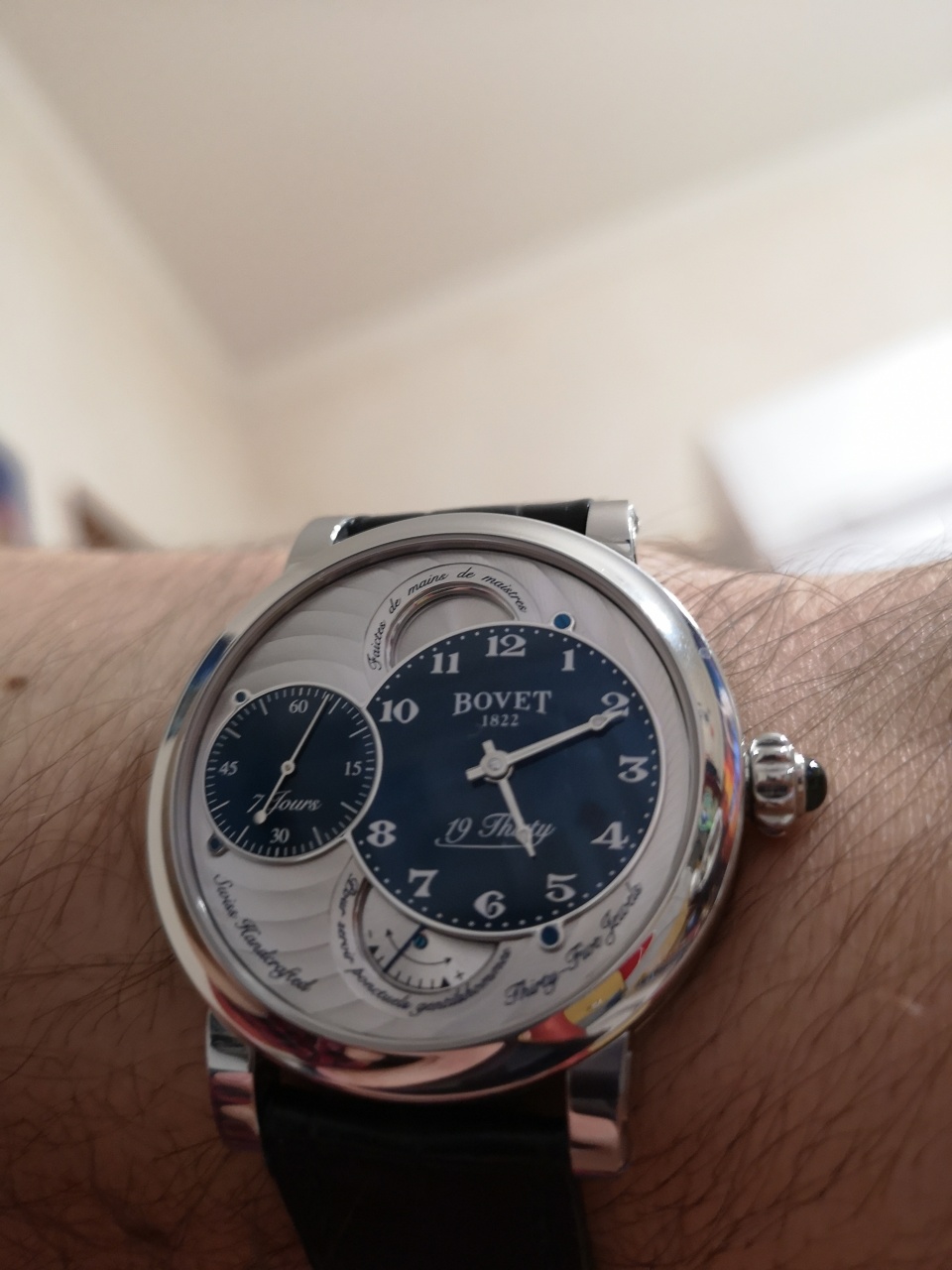 Продаю красивейшие bovet 19thirty c синим лицом на полном комплекте. Размер часов 42х9.8, очень удобные и невесомые на руке. Мануфактурный красиво декорированный механизм с запасом хода 7 дней. Индикация часов, минут, секунд и запаса хода. Все что нужно для счастья)).. Покупал новыми в пленках в 2016 году, носил редко, состояние НОВЫХ часов (не фигура речи, можно убедится лично). Цена, при этом, в 2 раза ниже рекомендованного ритейла.