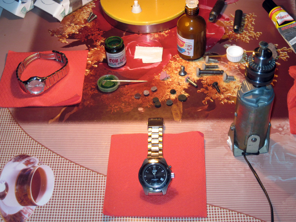 Не отходя от кассы, решили их поменять, так сказать, с личным осмотром. Предварительно прочитал лекцию о преимуществах WR50, литых браслетов и прочего.