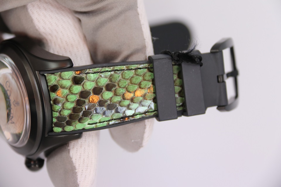 Ремень: каучук с вставкой из кожи питона, застежка шипом.